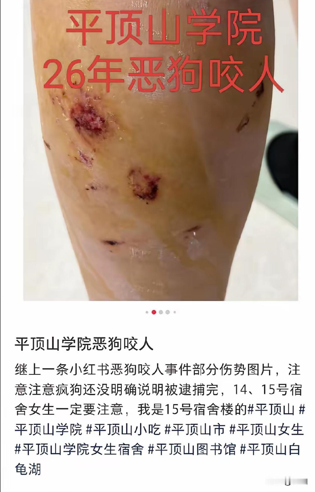 2026年4月19日晚,平顶山学院一大三女生回宿舍,被四五只流浪狗围上来撕咬,全身20多处伤口。