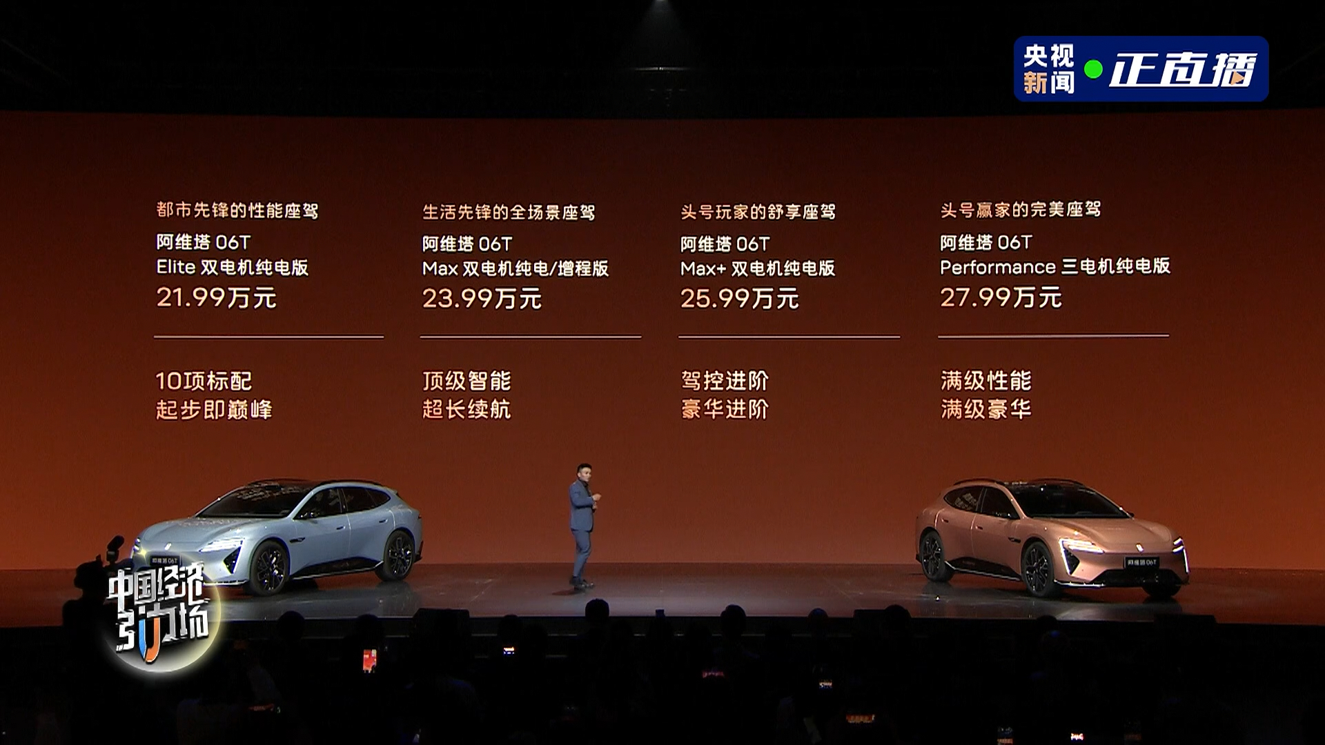 价格方面,阿维塔06T这次共推出4个版本:Elite双电机纯电版21.99万元,Max双电机纯电/增程版23.99万元,Max+双电机纯电版25.99万元,Performance三电机纯电版27.99万元。