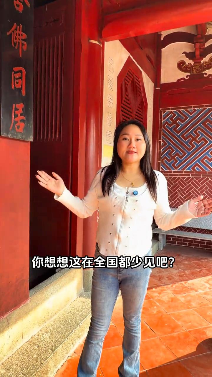 在寺门口有看到一副对联写着:"门前石分半,仙舍佛同居"。你想想这在全国都少见吧?那为什么他们能住在一起?没人说得清,但他们就这么住了上千年。你有没有想过一个问题,一座寺凭什么叫"仙门"?