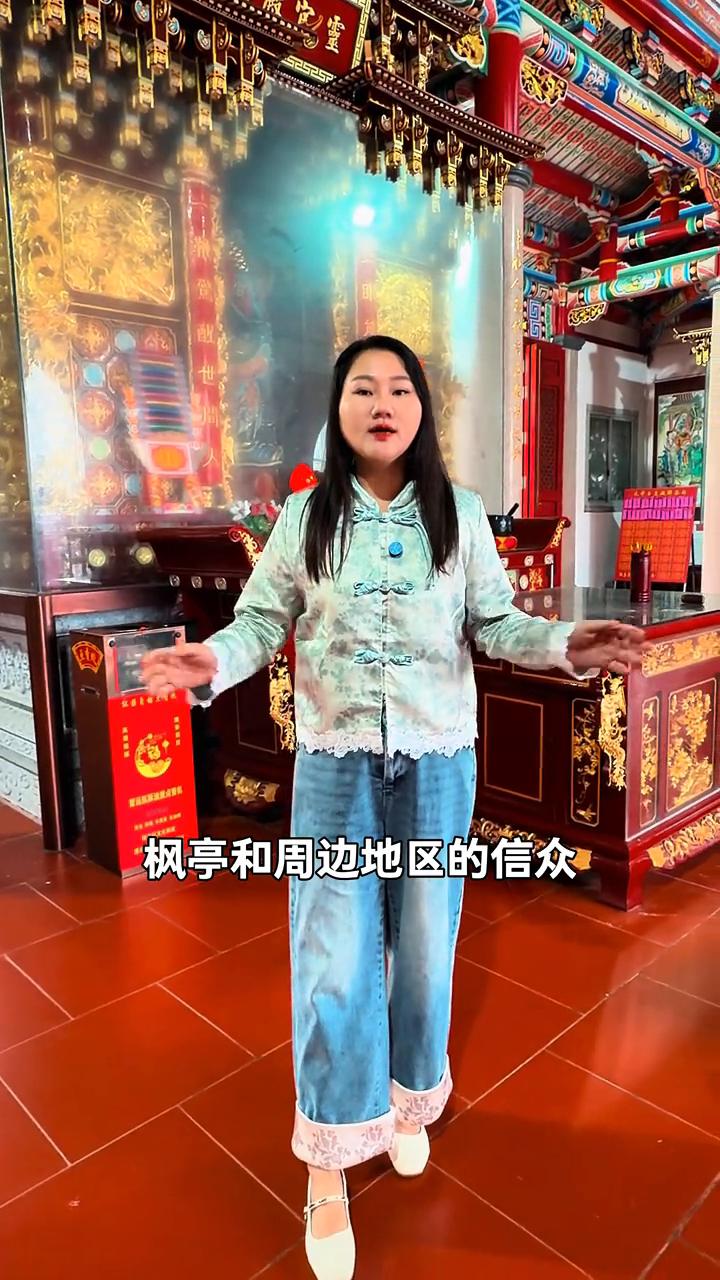翻新的这座宫殿是2023年才建成的,整个殿宇占地6000多平方,规模相当可观。光主殿面积就有400平方米,采用仿古宫殿结构,琉璃紫瓦、飞檐翘角、盘龙玉柱。大殿之上主祀玉皇大帝,左祀玄天上帝,右祀普法天尊。两侧分列着天将和元帅,威严肃穆。每年香火鼎盛之时,枫亭和周边地区的信众都会聚齐到此虔诚朝拜。