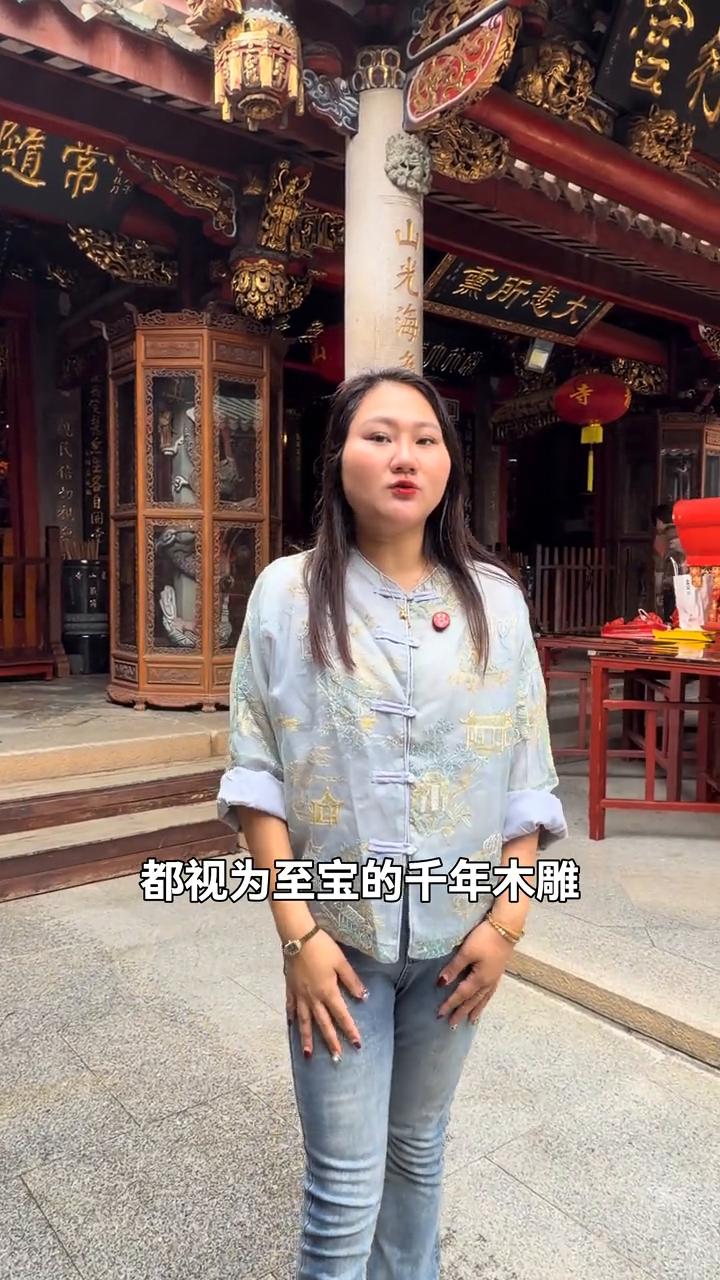 一座外表看起来平平无奇的闽南宫殿,红砖燕尾齐,可里面却供着一件让全国佛教界都视为质保的千年木雕。而这座观音来历很悬,传说这里曾有一颗夜里会发光的千年巨章。一位天竺高僧曾认为他有佛性,于是整棵树没有被砍伐,而是被直接雕成了这桌光阴,一棵树变成一尊佛,想想这得是多大的缘分。