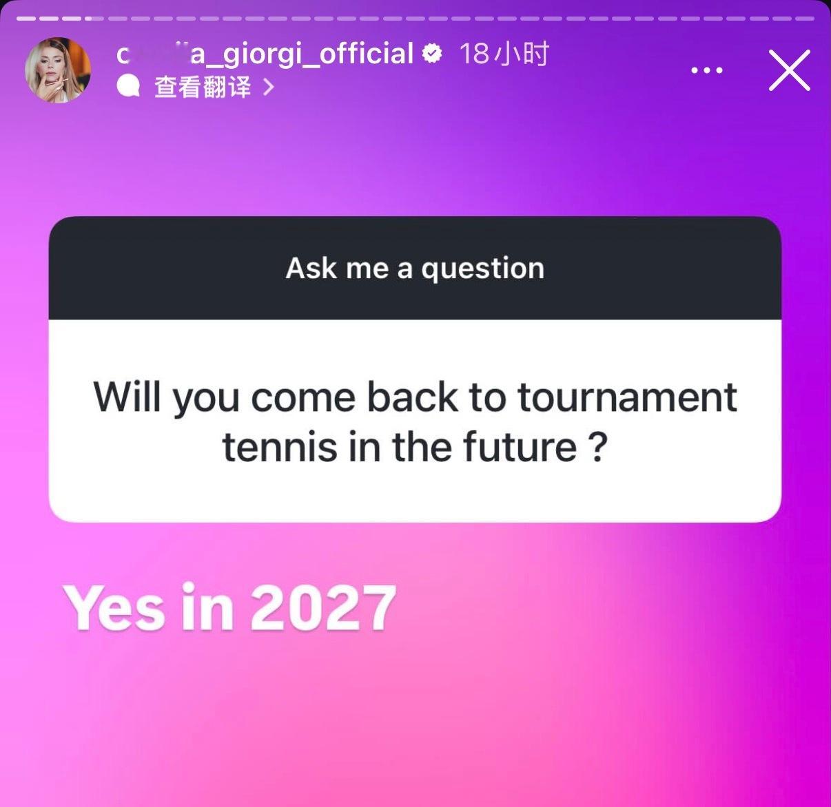吉奥尔吉在社媒上透露,她将在2027赛季复出