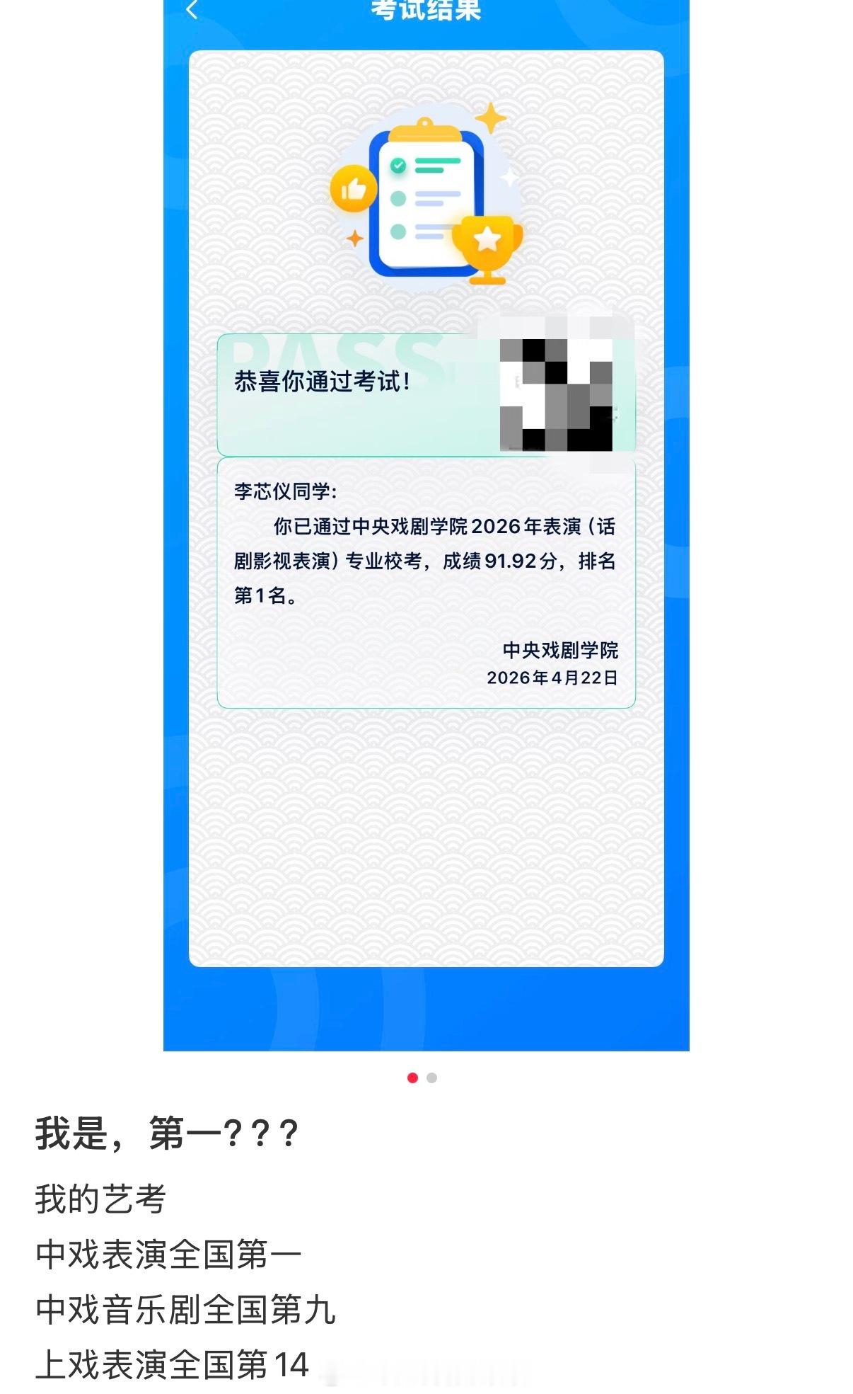 中戏表演第一也来了李芯仪中戏表演全国第一李芯仪中戏表演专业全国第一