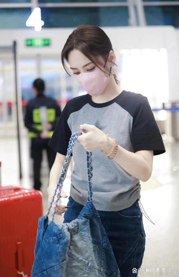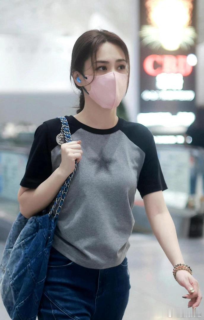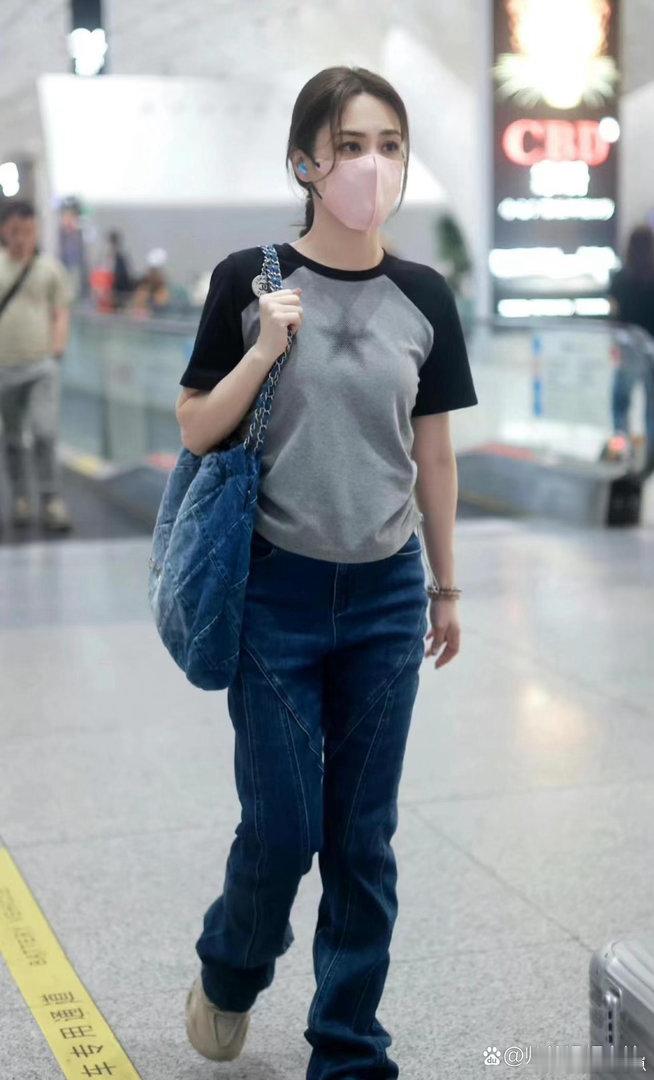 阿娇瘦身成功后时尚感爆棚!拼色短T恤搭配牛仔裤,简约随性还超减龄~