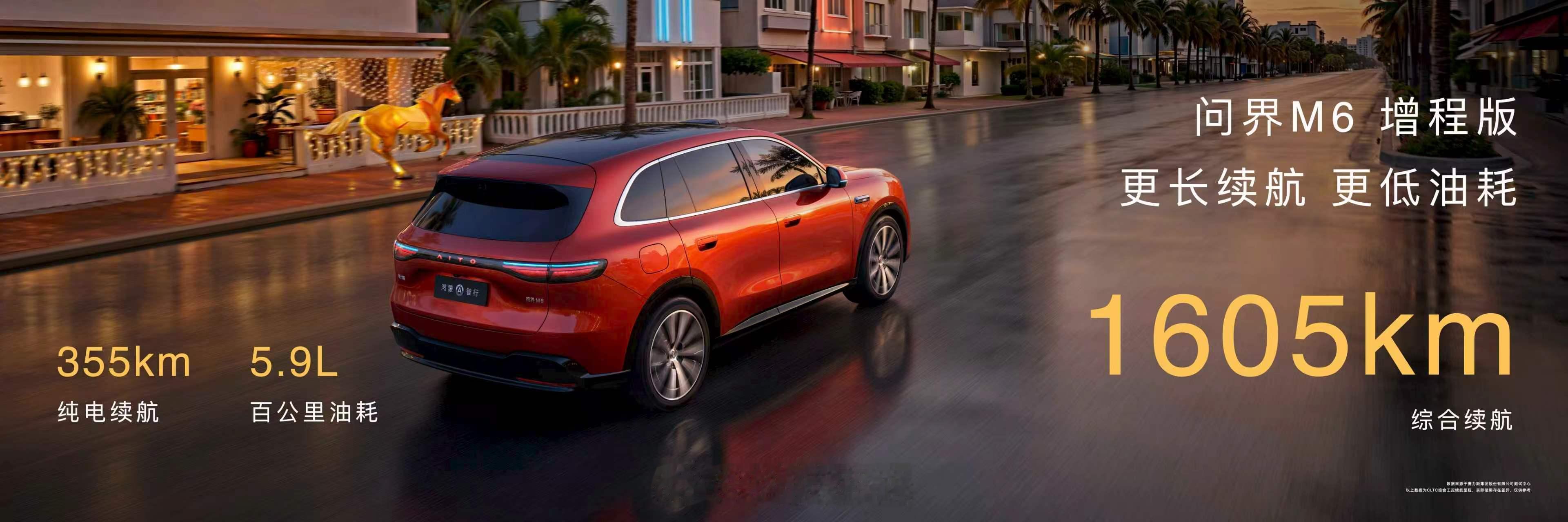 鸿蒙智行发布会 问界M6搭载华为巨鲸电池平台,纯电版全系标配100kWh三元锂电池包,云端BMS电池管理系统。问界M6纯电版CLTC续航里程至高760km,让每个远方都无需焦虑;增程版CLTC综合续航至高1605km,CLTC纯电续航至高355km,百公里油耗低至5.9L,让每个终点都安心抵达。鸿蒙智行新品标配华为巨鲸电池平台