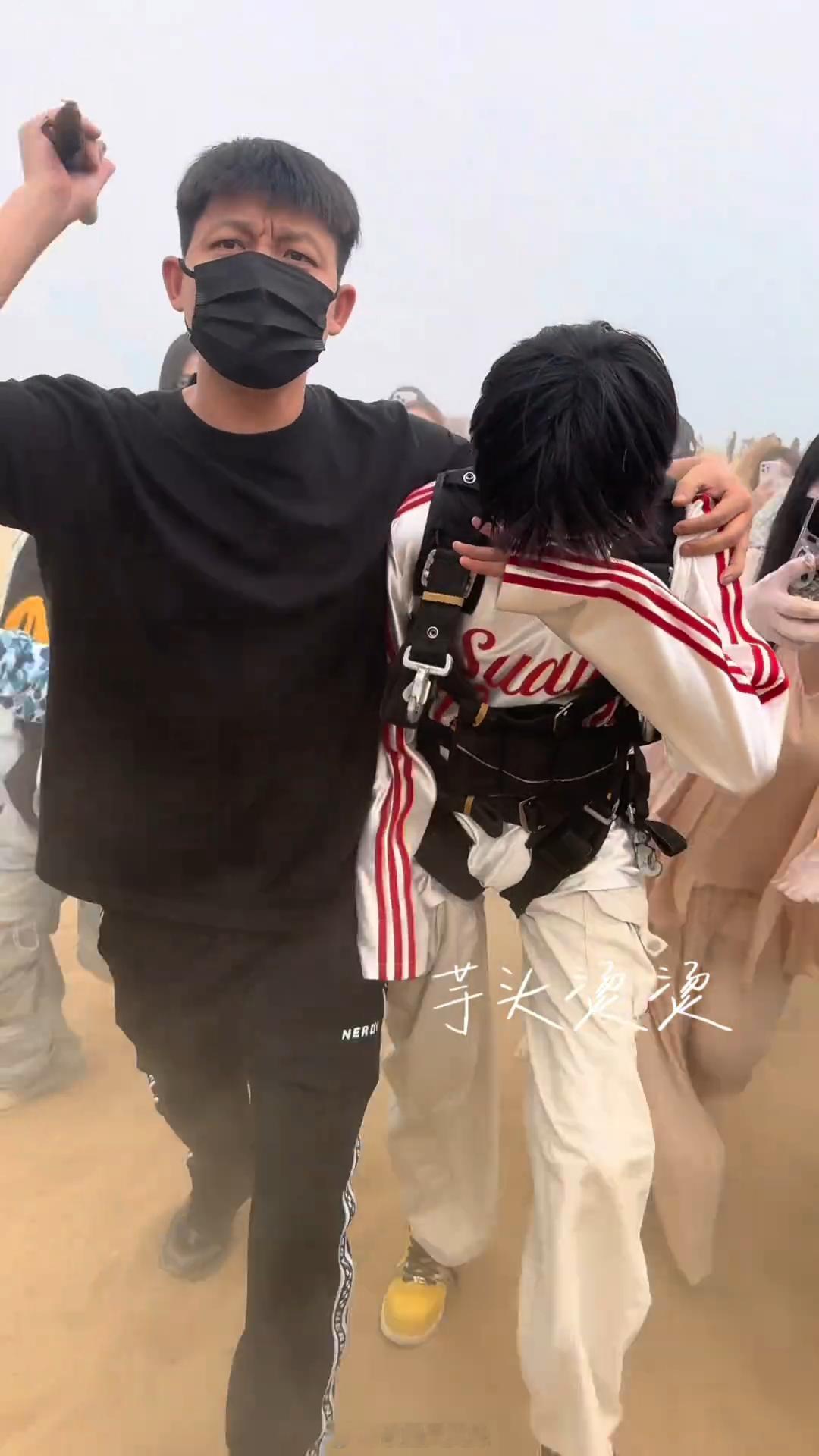 陈思罕一手捂嘴一手护裆啊啊啊啊啊谁跳伞下来一群人围着