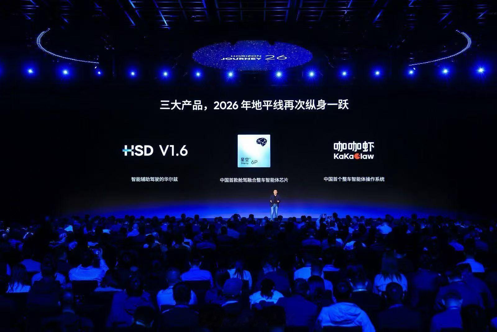 地平线2026年度技术产品发布会,三大核心产品亮相。中国首款舱驾融合整车智能体芯片星空 Starry首发,旗舰星空6P用5nm车规工艺,650TOPS算力,一芯统四域(智驾/座舱/仪表/车控),打破双域壁垒;国内首个整车智能体OSKaKaClaw咖咖虾,人车交互更像丝滑。还有HSD 1.6,国内首个量产一段式端到端智驾,AEB/AES最高130km/h,并新增遥控泊车、离车泊入等。从芯片到系统、从智驾到智舱,地平线正逐步达成全栈闭环,迈入整车智能体时代。