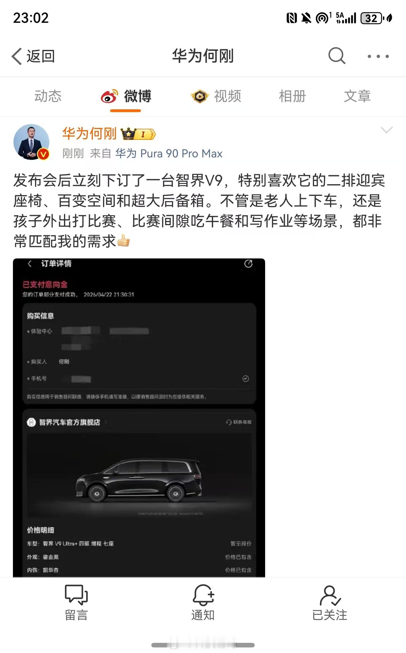 智界V9预售1小时订单突破12500台 智界V9预售价39.98万~52.98万元仅1小时,订单量便突破12500台何刚下订智界V9太猛了