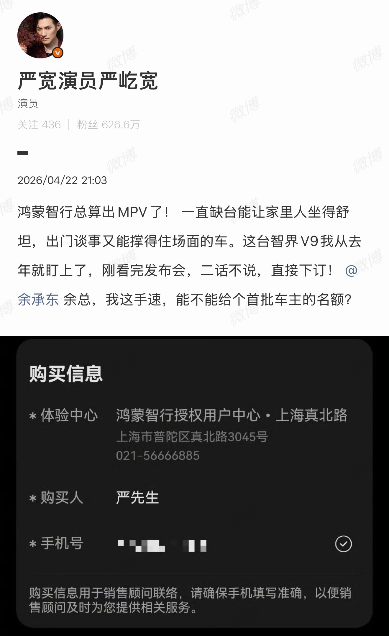 智界 V9预售一小时订单破12500台~目前知道2/12500:一位是何总,一位