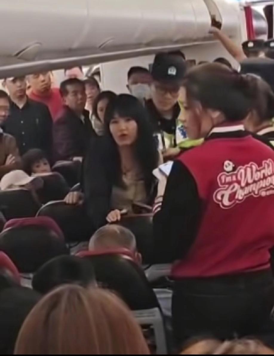 后续就是,在调解无果后,机组选择了报警,女子也被带下了飞机。