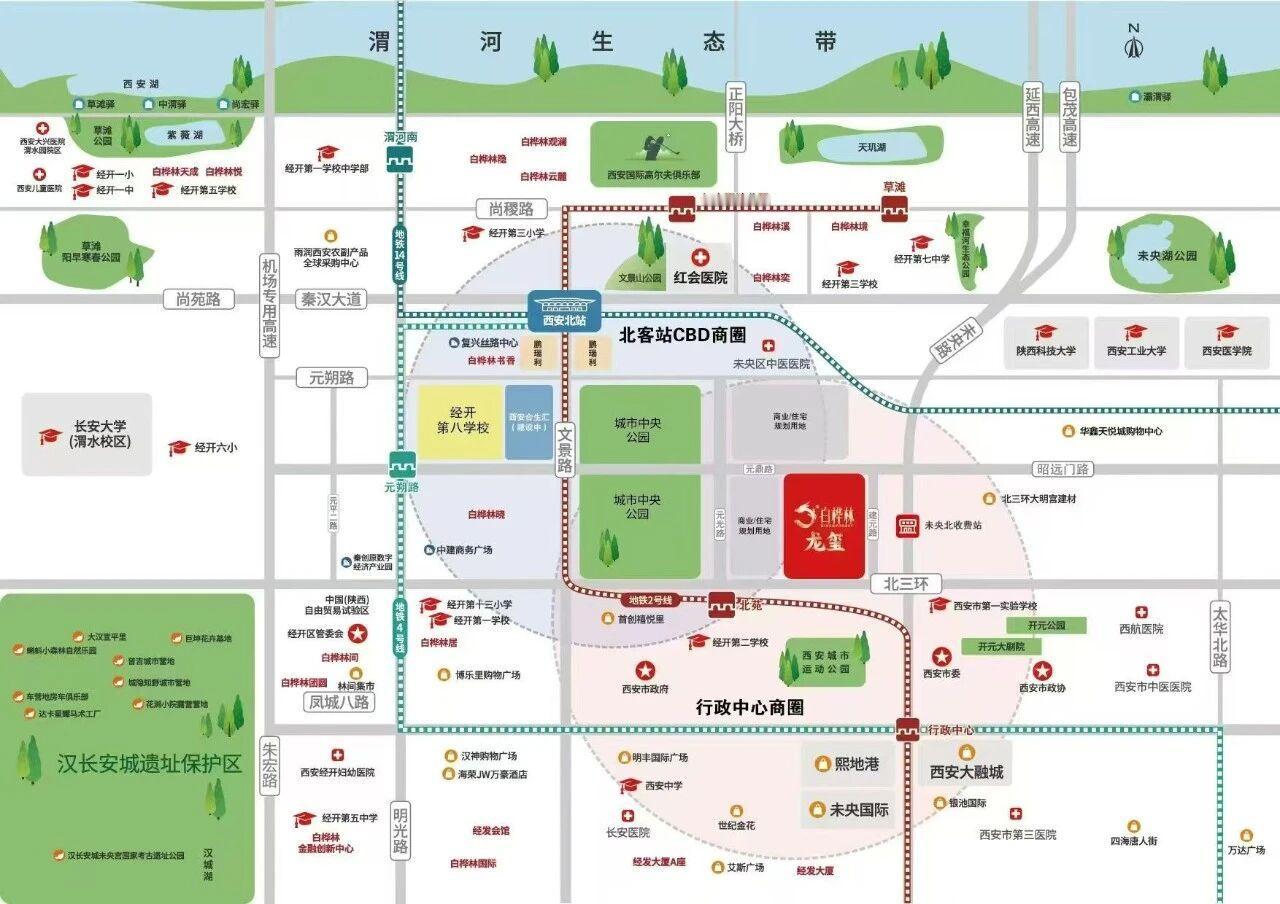 项目自建品质幼儿园,西侧紧邻百亩城市中央公园,南侧为绕城高速,西侧约800米为规划的西安经开第八学校(九年制);距西安地铁2号线北苑站约500米。