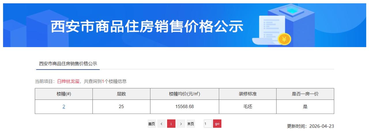 快讯!刚刚,西安住建局官网公示了经开区高铁新城板块“白桦林·龙玺项目”新一批房源的价格,均价为15568.68元/㎡!