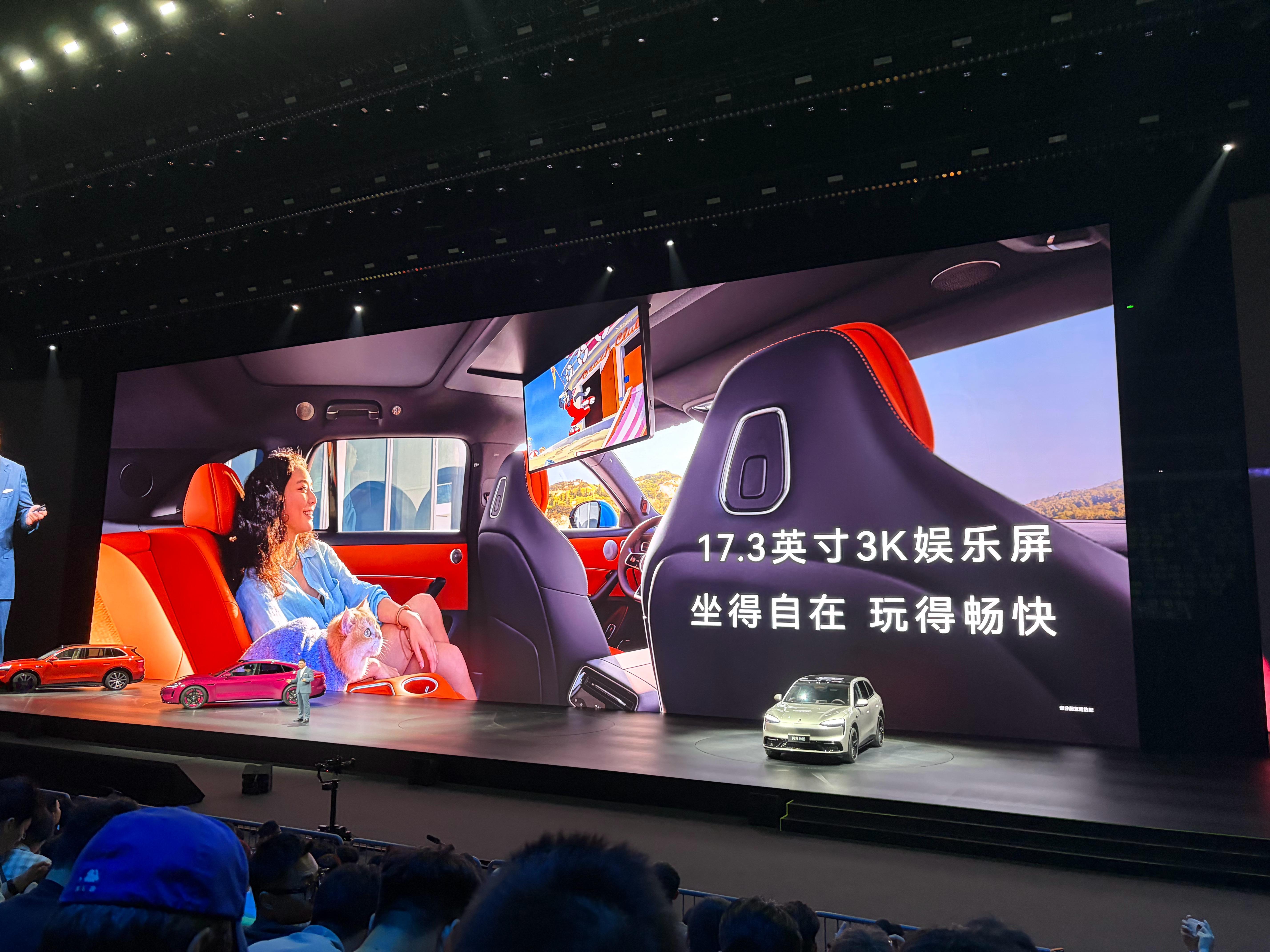 拥有1915mm宽敞乘坐空间,前排全新人机工学运动座椅采用宽体包裹与十层堆叠设计,乘坐更舒适。主副驾双零重力座椅支持“躺平”模式,创新副驾置物位搭配腿托与手套箱衔接,解锁自由储物新体验。二排座椅标配通风、加热功能,靠背支持119°~132°电动调节,坐垫长度564mm,长途乘坐轻松惬意。后排搭载17.3英寸娱乐屏,搭配创新智控旋钮,轻松操控媒体、空调等功能,出行乐趣拉满!全车10处磁吸点位,支持丰富磁吸配件!