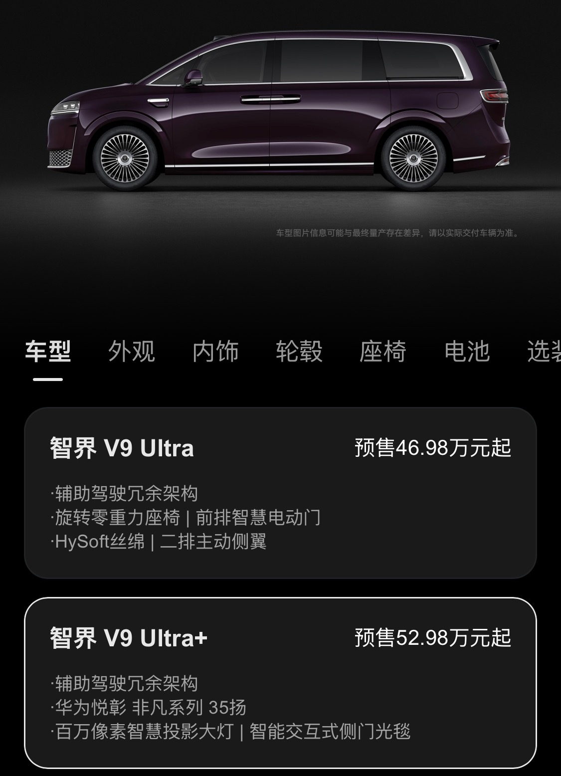 智界V9预售价39.98万起,全是增程7座,分后驱和四驱智界V9