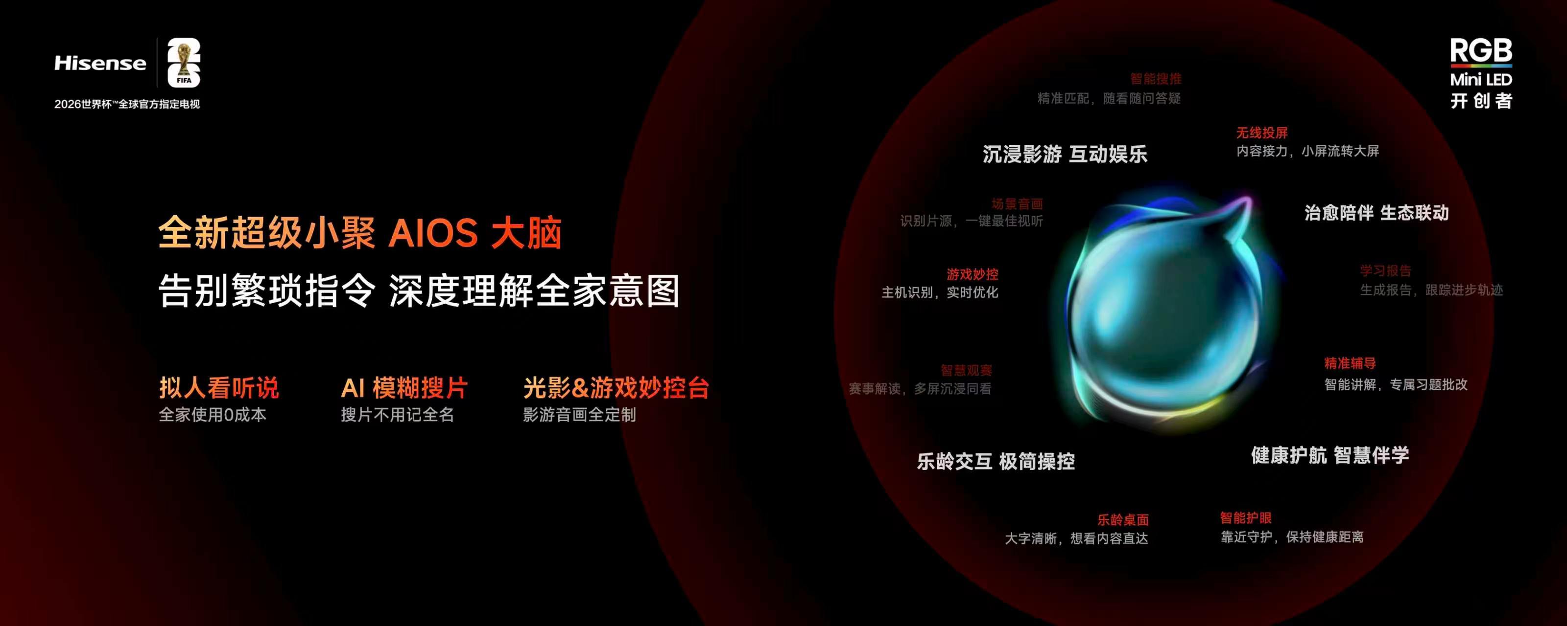 简直是画质革命,搭载全球首创RGB-Mini LED光学架构,三原色纯净直出,实现100% BT.2020色域,搭配信芯AI画质芯片、至高4680控色分区+3000nits XDR Pro亮度,色彩更纯、画面通透细腻,光晕大幅减少。护眼节能双升级:硬件级降低42%有害蓝光,整机功耗下降30%,兼顾健康与环保。