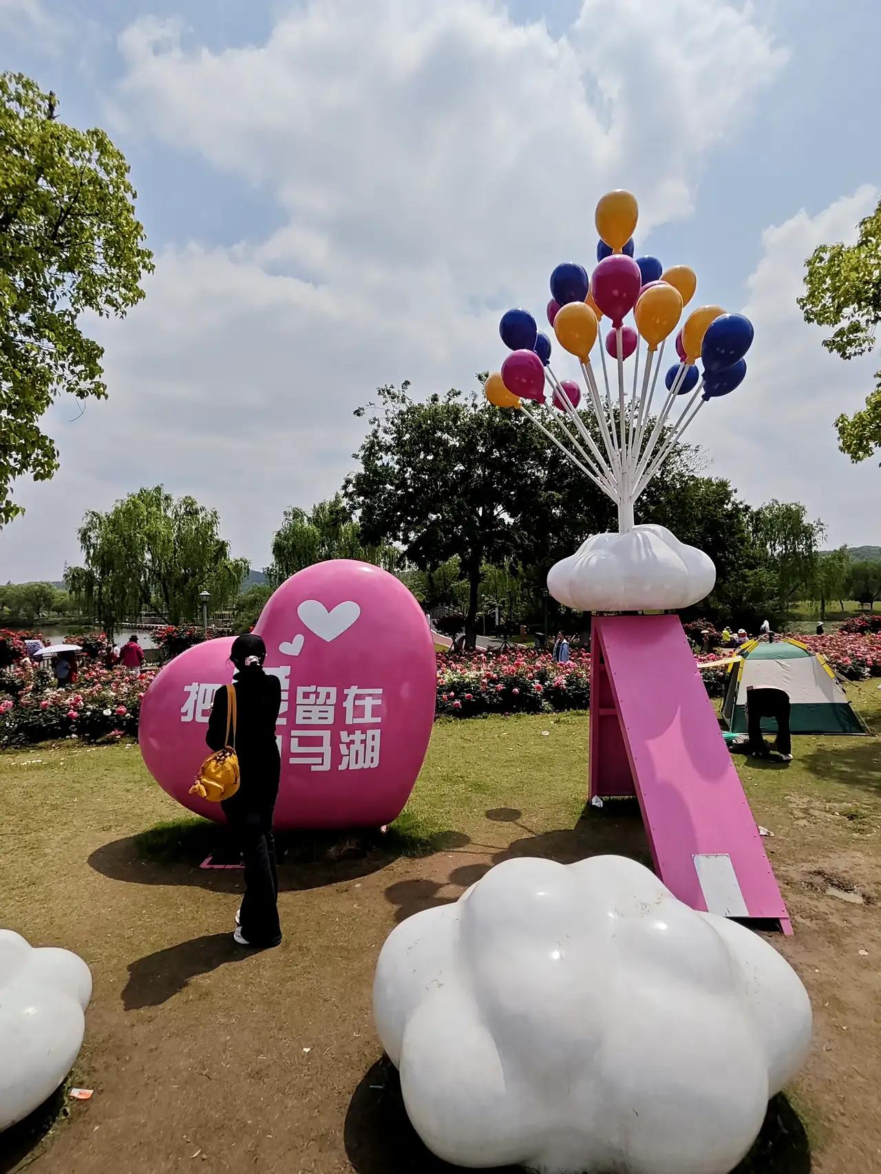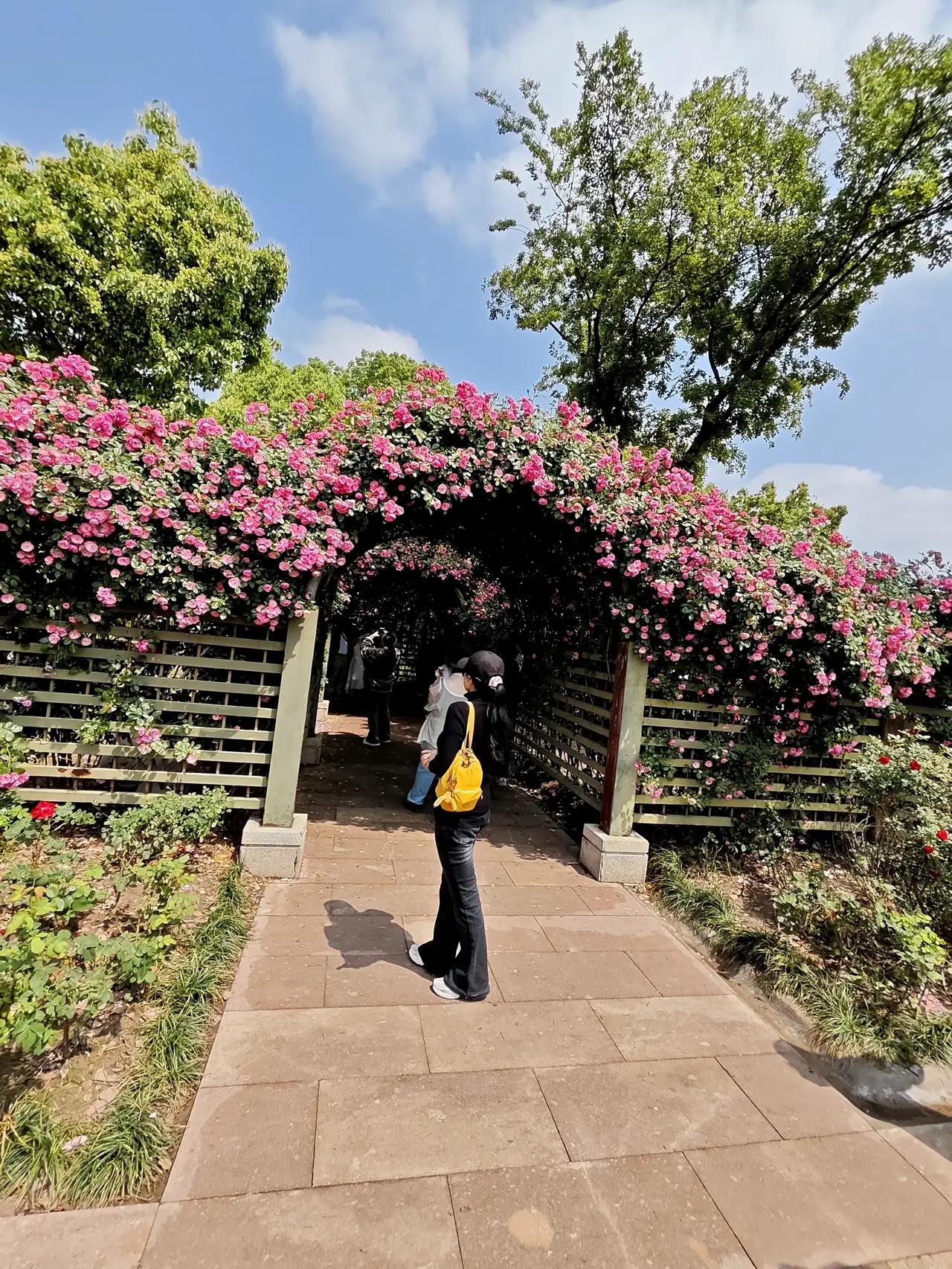 近日杭州白马湖蔷薇初开,高杆月季花墙最出片,还有玫瑰、月季跑道也将陆续上线,超级梦幻美妙!而且公园也很友好,还顺便可以搭帐篷露个营。