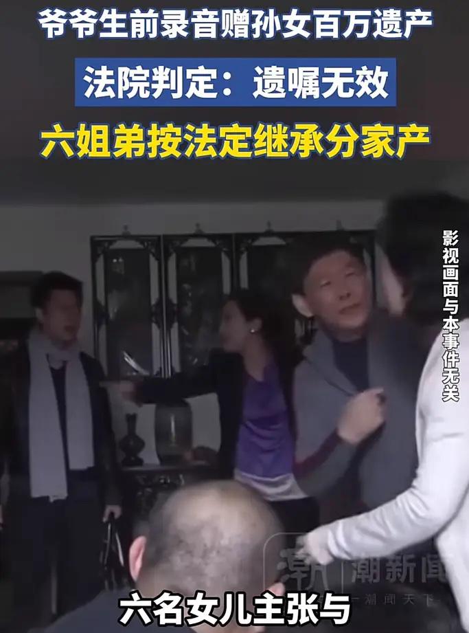 程大爷去世后六个姐妹一起找上了弟弟的门,她们觉得父母留下的钱,七个孩子都有份,应该平分,每人差不多十五万六。弟弟拿出父亲那段录音,说钱早就说好给孙女了,跟你们没关系。