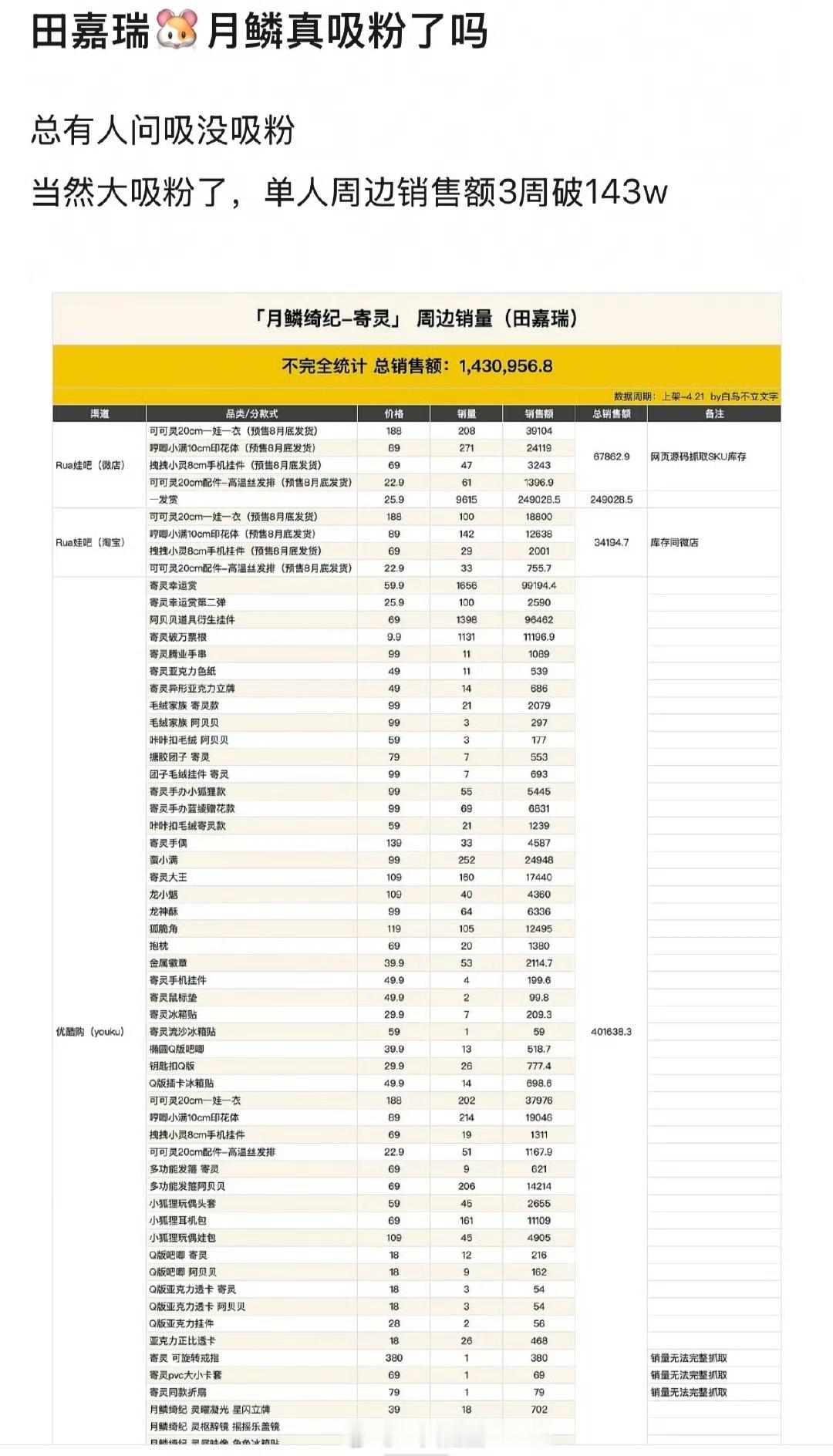 田嘉瑞《月鳞绮纪》肯定是大吸粉啊单人周边销售额3周破143w,粉丝云包场第一寄灵角色热度破亿,1月4个商务官方出战报,很牛的田嘉瑞非常优秀,特别有实力,值得粉丝最好最好的爱田嘉瑞田嘉瑞月鳞绮纪田嘉瑞寄灵