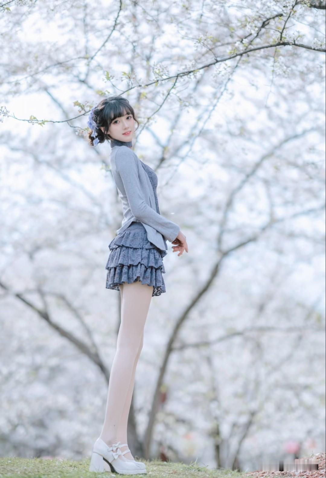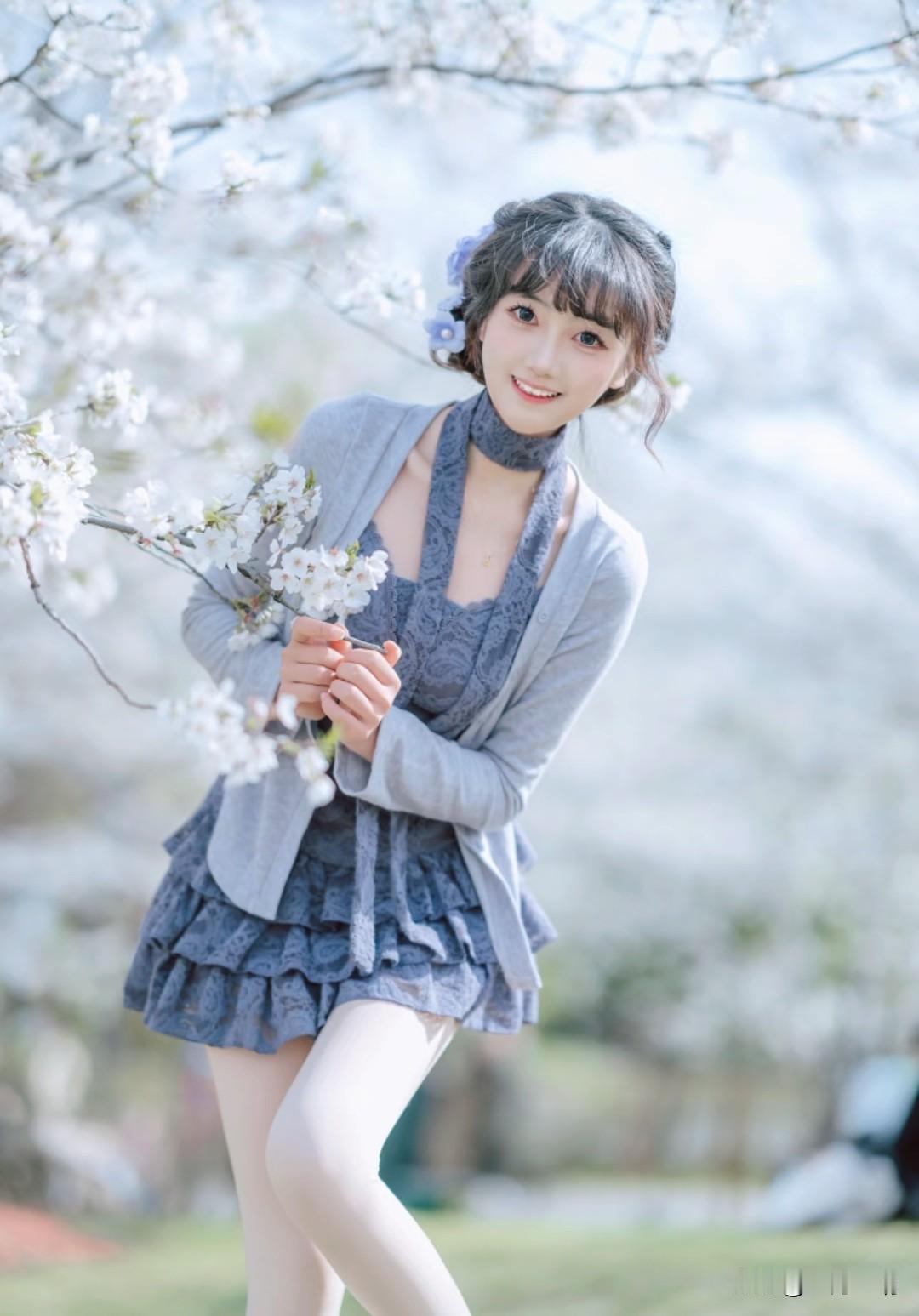 樱花树下的一眼心动!这笑容,比春天的阳光还治愈✨
