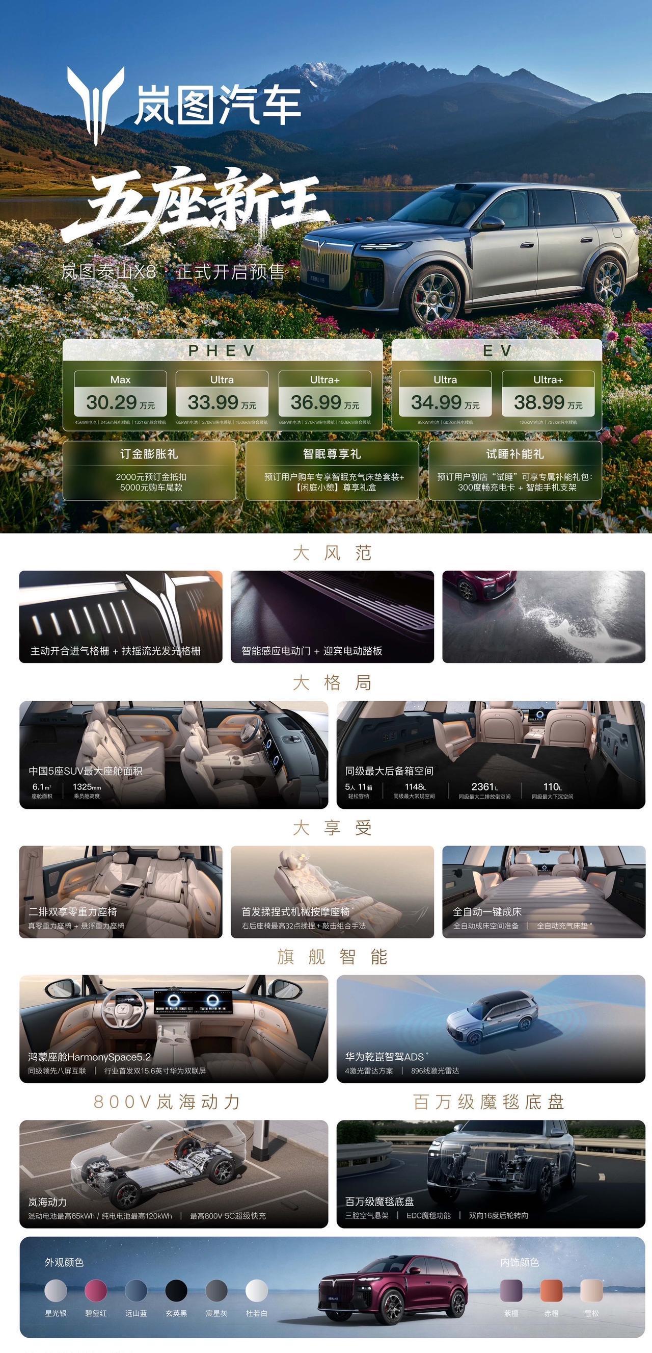开售即顶流,岚图泰山X8用市场热度,回应每一份期待。作为“五座新王”,它以30.