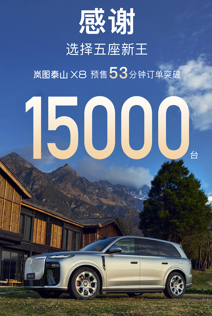 岚图泰山X8预定量挺好,这车的外观气场是30万级最强的岚图泰山X8五座新王移动总统套房30.29万起岚图泰山X8预售岚图泰山X8预售53分钟订单破1.5万