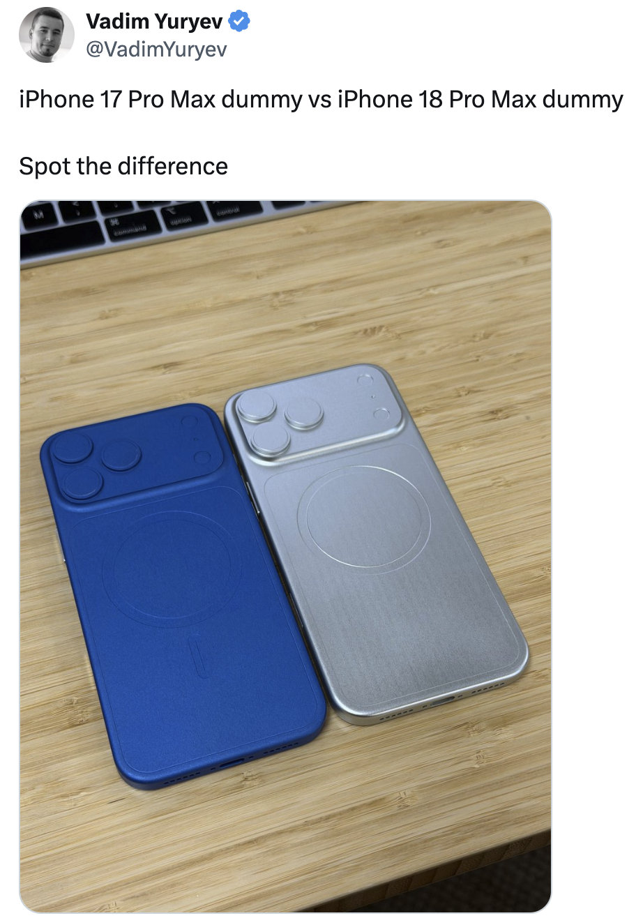 这位博主说 iPhone 18 Pro Max 比起 iPhone 17 Pro