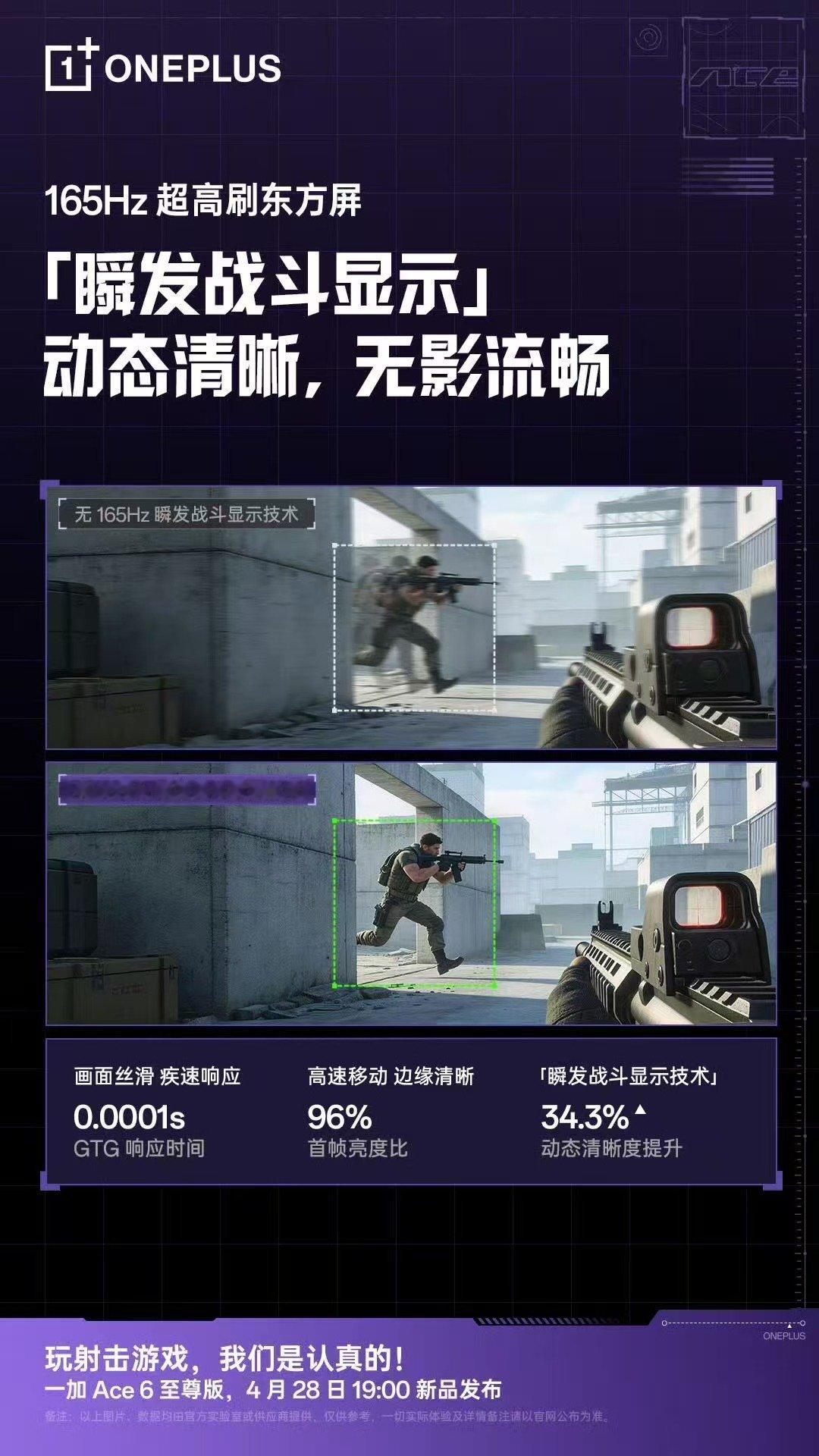玩射击游戏,我们是认真的!4 月 28 日 一加 Ace 6 至尊版 19:00 新品发布,敬请期待!