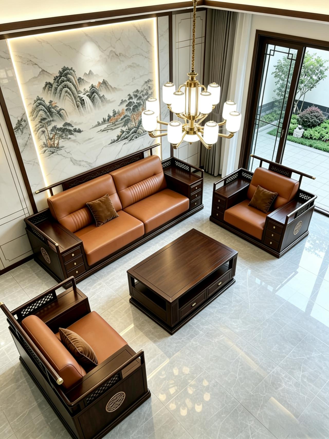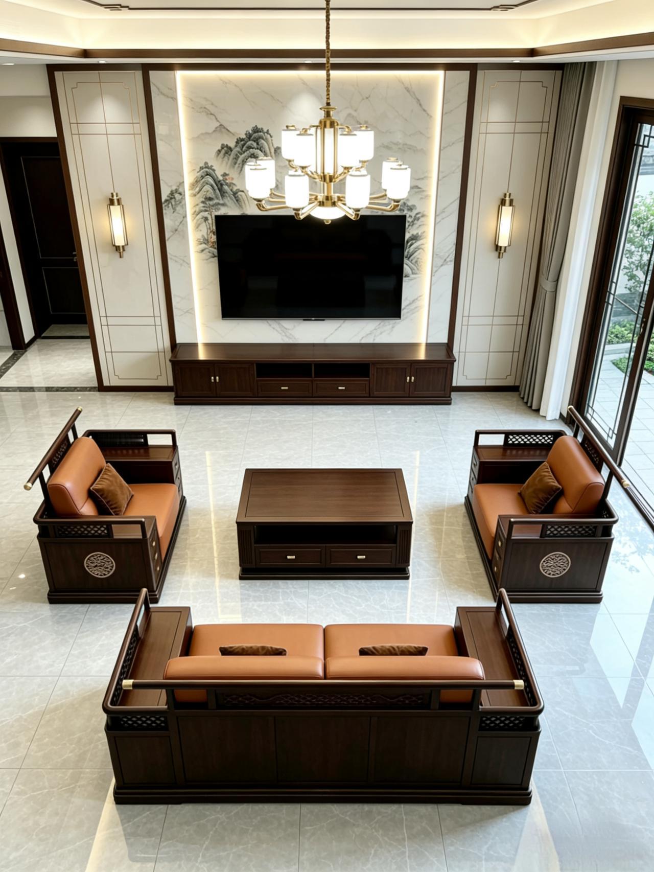 农村客厅这样摆沙发,大气又舒服!新中式实木沙发,款式简单大方,坐上去软硬适中,越坐越舒服。
