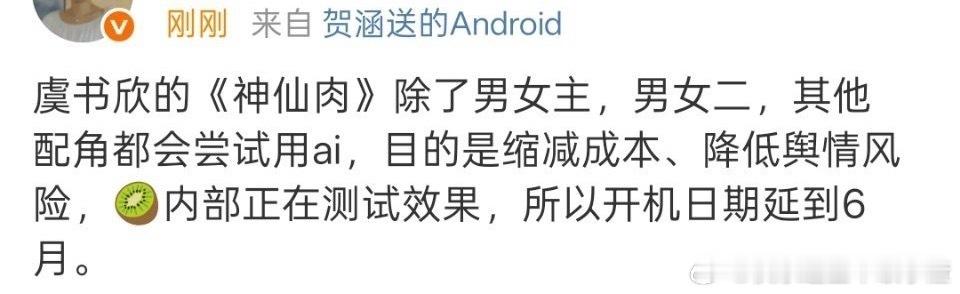 瓜主爆料虞书欣何与的《神仙肉》除了男女主、男二女二,其他角色都要用ai配角了。