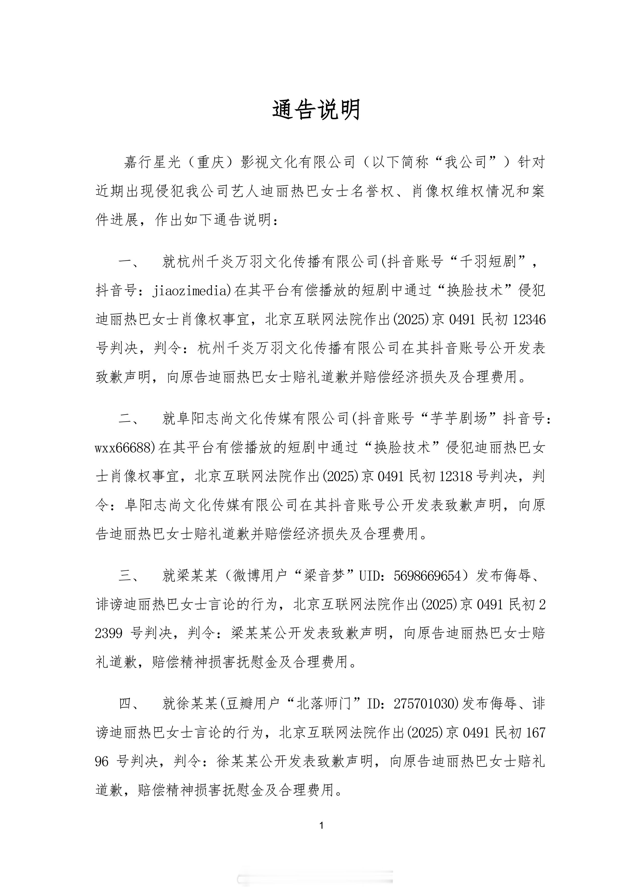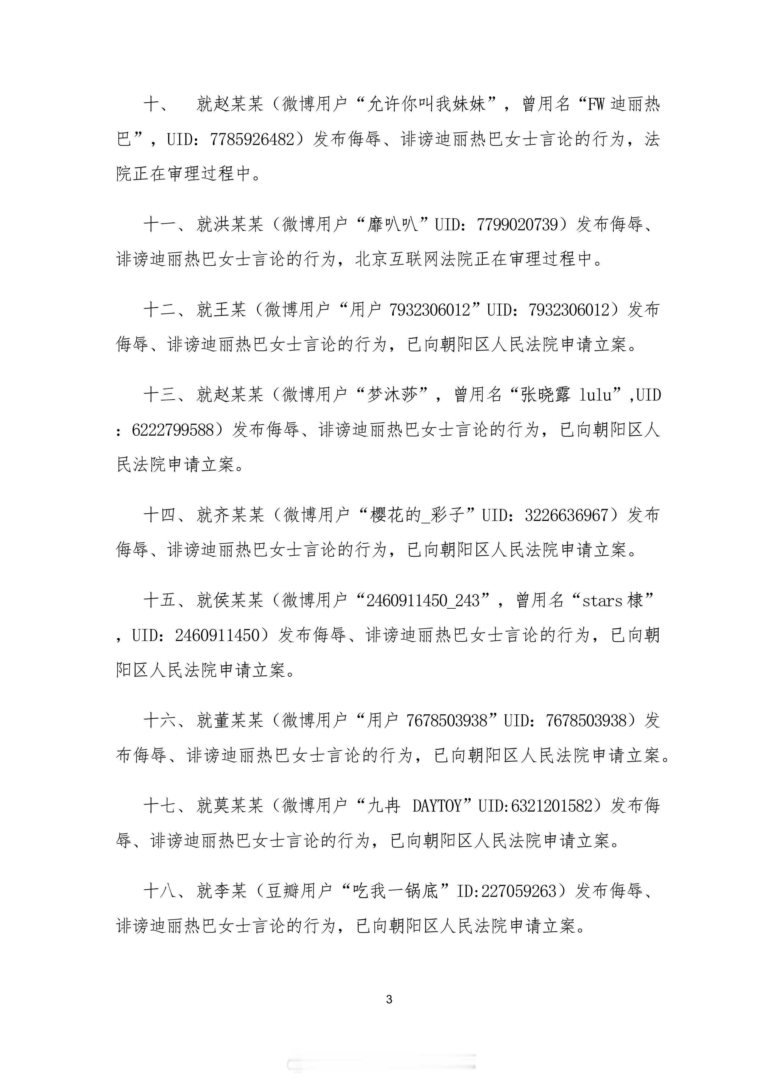 迪丽热巴工作室维权通告进展说明热巴工作室公布42起维权案件说明