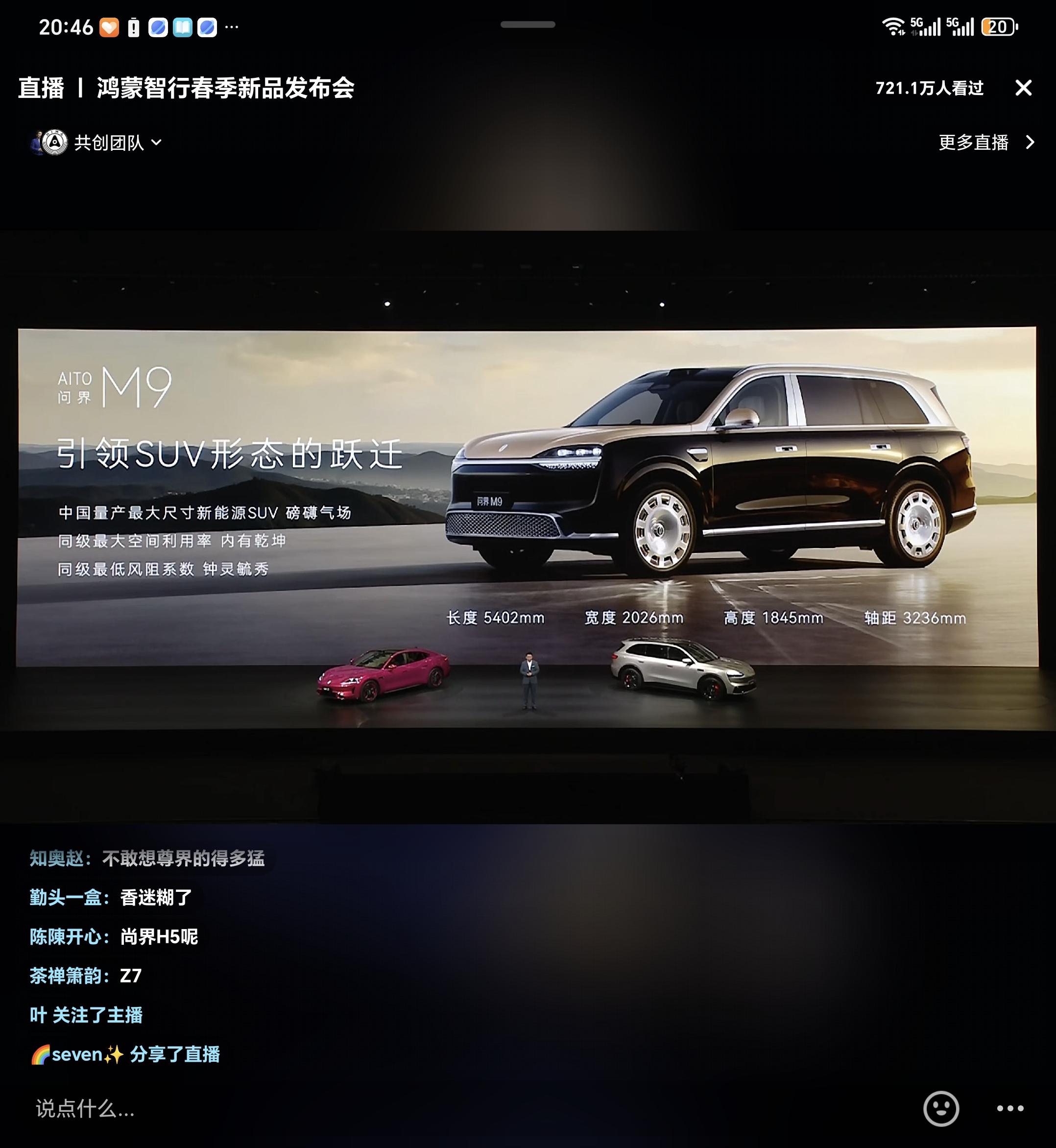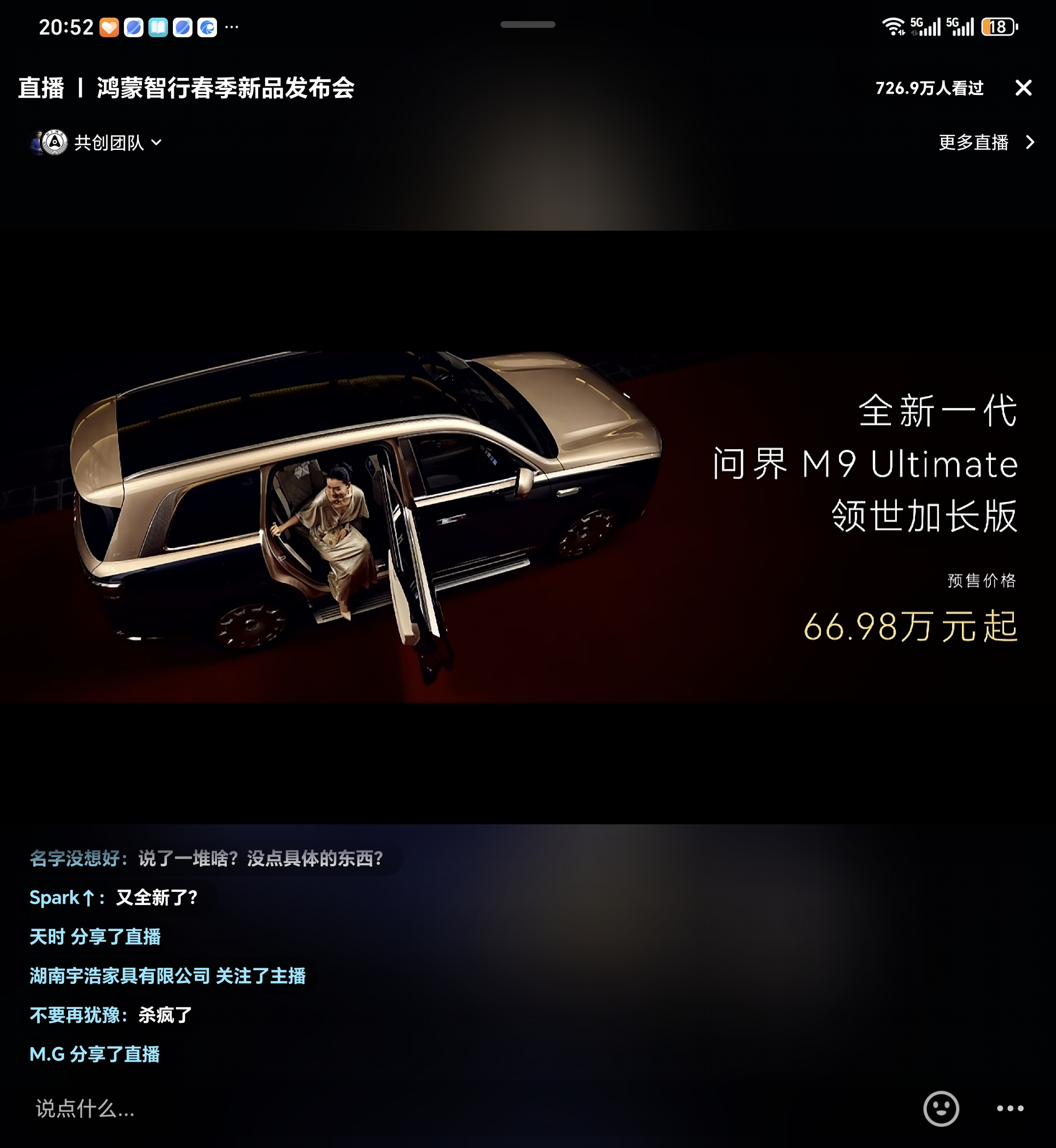 鸿蒙智行发布预售一小时,新款M9的小定已经超过11500台,难以想象这个上市两年卖了27万辆高端车皇,改款后的销量会恐怖到哪里?友商的一众9系怕是要瑟瑟发抖咯!