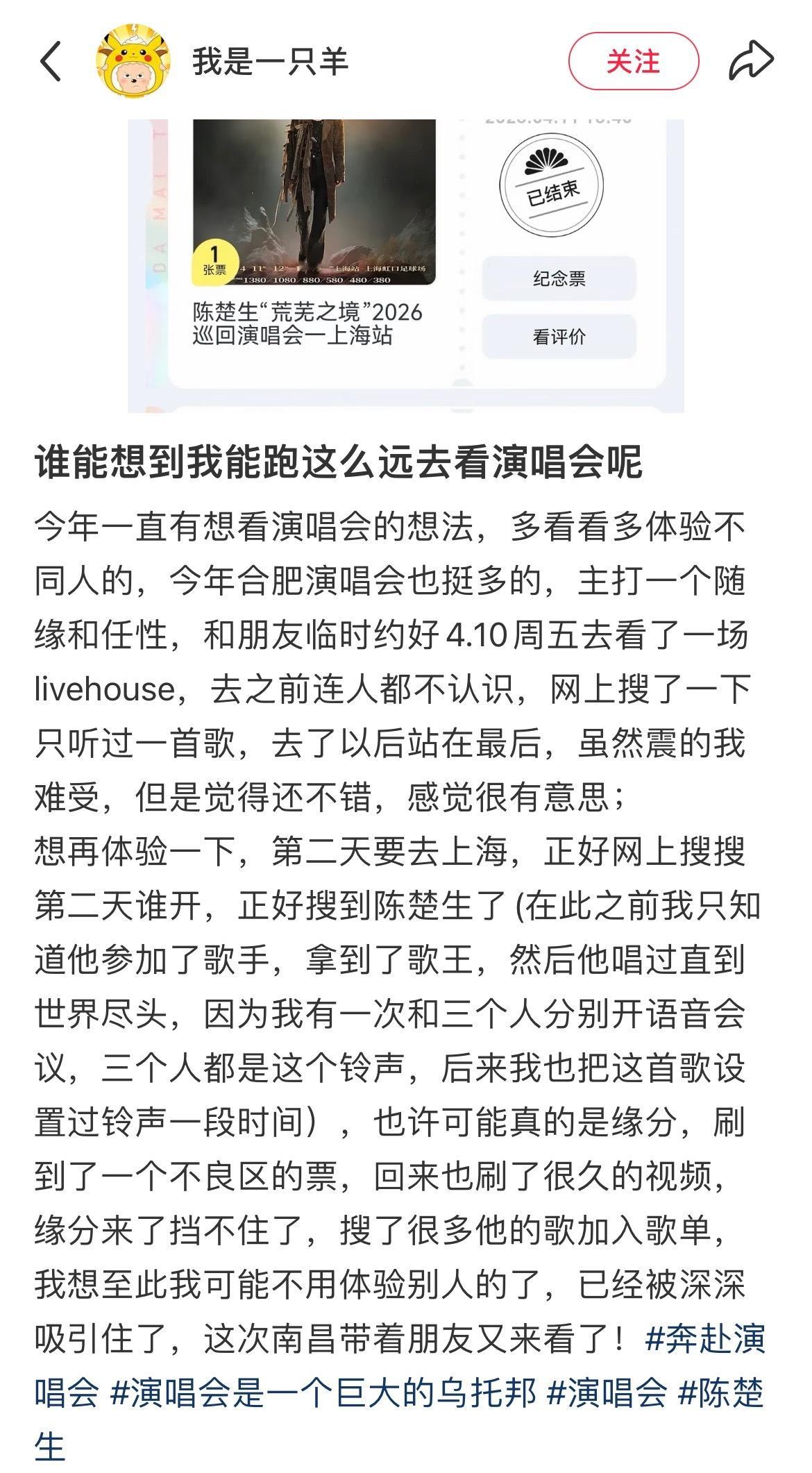 我们至今不知道陈楚生在荒芜之境首站上海场到底吸了多少粉入坑陈楚生只需要一场演唱会的时间,这件事我去年亲身体会过了我们新花生朋友已经美美奔赴南昌并计划购入六毛宝宝了哈哈哈哈哈哈哈