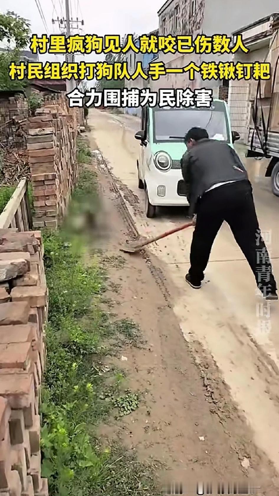 一件在村里,一条疯狗见人就咬,伤了好几个村民,最后大家自发拿着铁锹、钉耙合力把它围了。