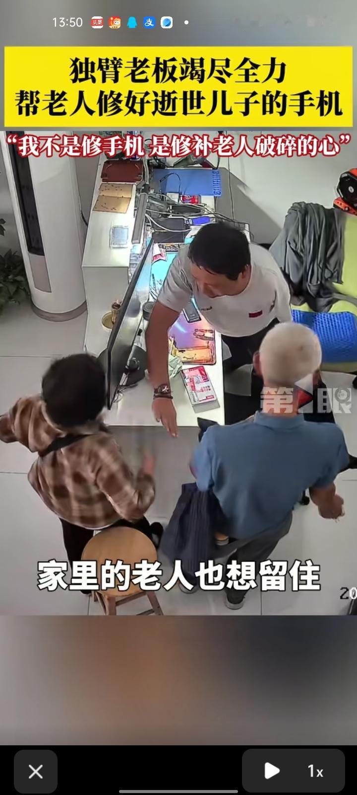 老板周先生表示,这是我今年第二次修这样的手机,上次是正月里主人去世了,家里老人也想留住孩子的音容笑貌,一般修手机的话基本上不计代价的帮他修好,然后很少收费。这不是修手机,这是修补老人破碎的心