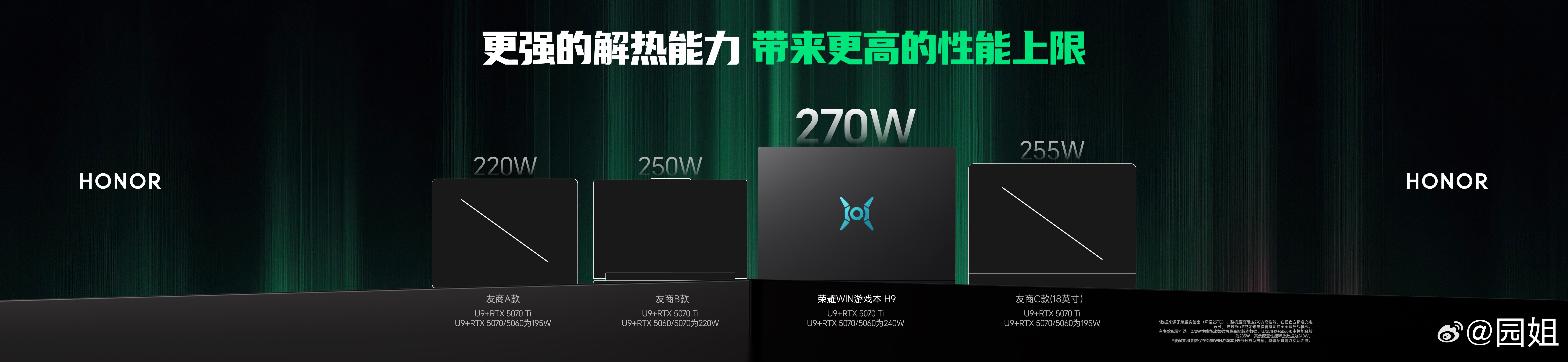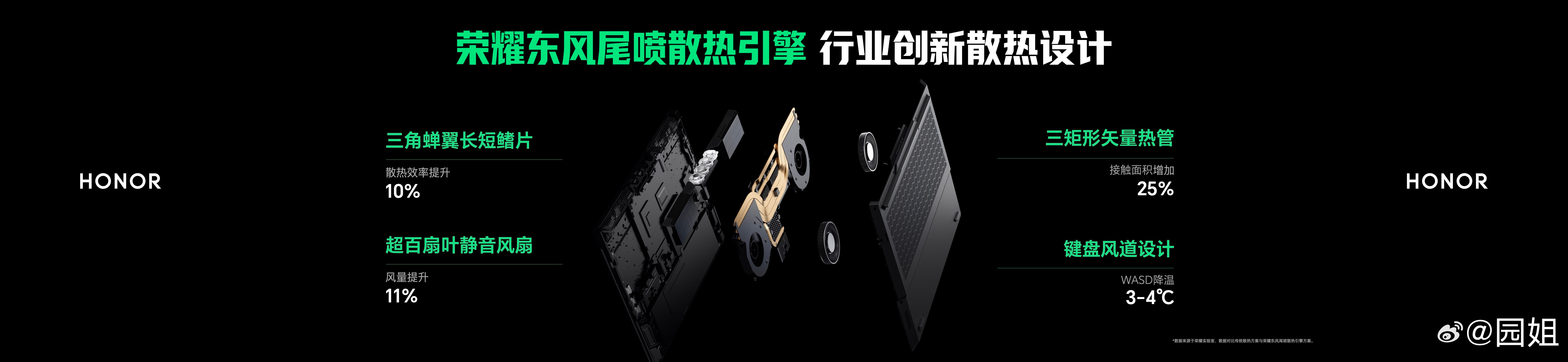 荣耀自研东风尾喷散热引擎,将#荣耀WIN游戏本# 的性能释放突破至270W,针对行业痛点,荣耀自研离心轴流混吹系统,重构风道设计,实现CPU与GPU双区域全面覆盖,较传统方案提升内吹区域风量57%,确保核心硬件热量快速导出,带来20W的性能释放提升。#荣耀发布会#