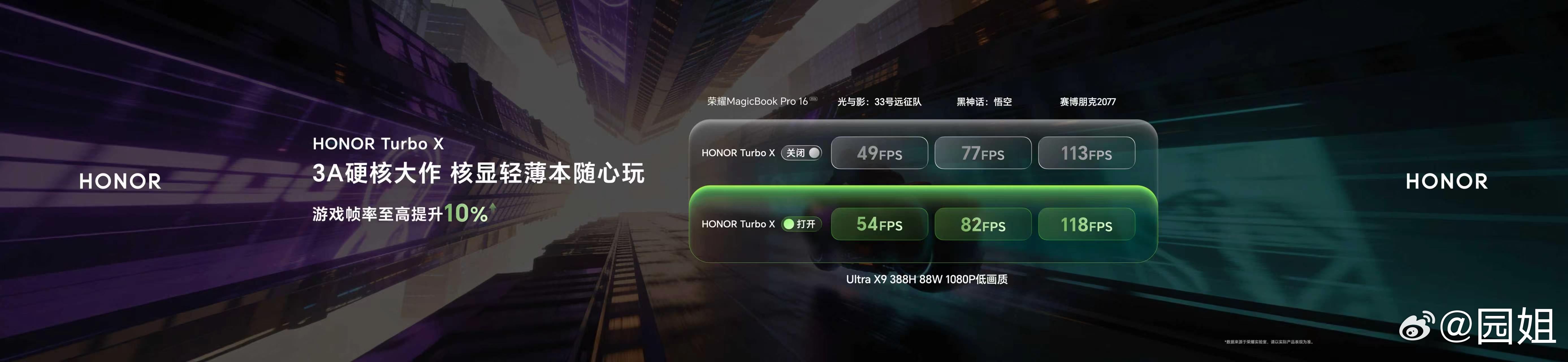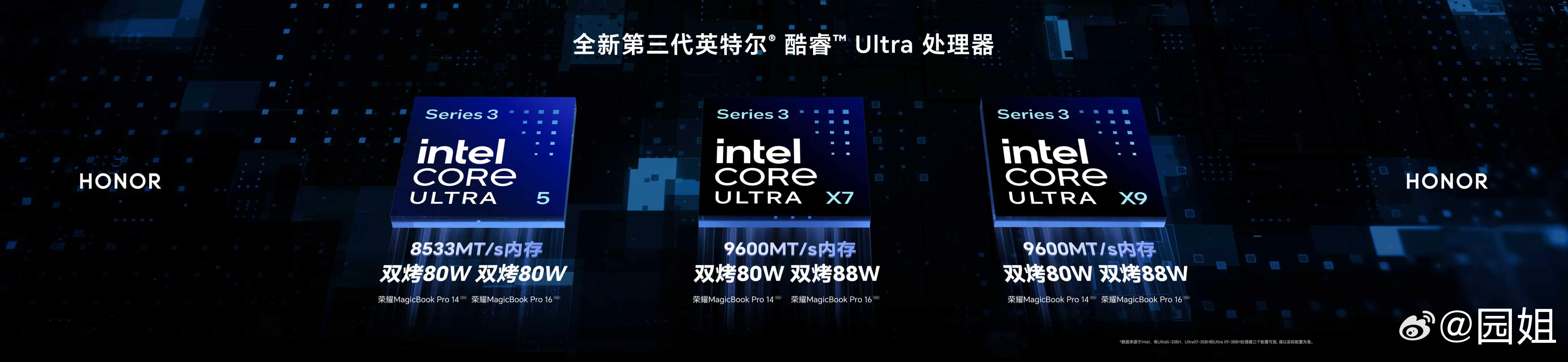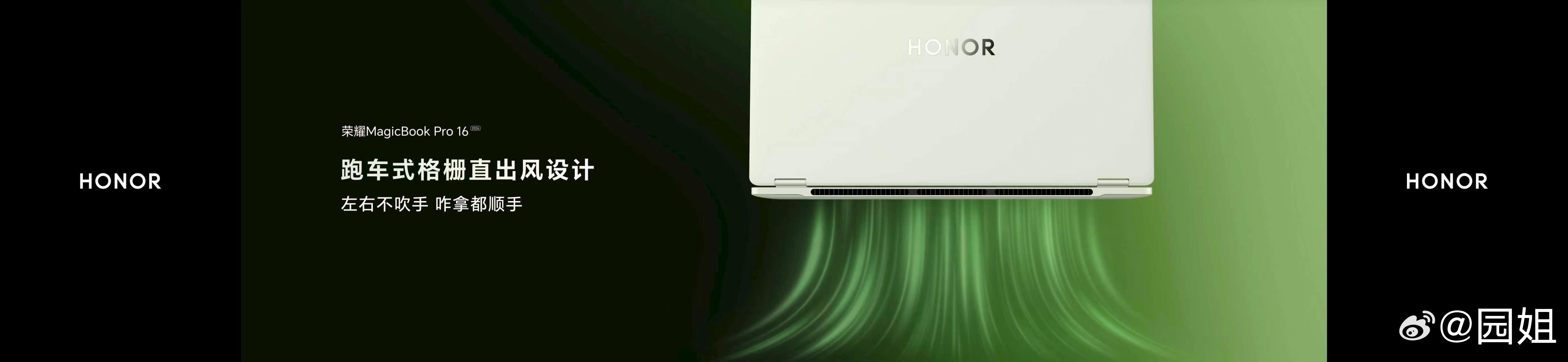 #荣耀MagicBook# Pro系列2026拥有星辰灰、月光白和青瓷绿三款配色,其中全新的#荣耀MagicBook Pro 16#2026采用跑车式格栅直出风设计,左右不吹手,怎么拿都顺手。全系最高搭载第三代英特尔酷睿Ultra X9 388H处理器,在HONOR Turbo X性能调校和全新智冷内吹散热系统的加持下,至高可实现88W性能释放,帧率更可提升10%,让核显轻薄本也能随心玩3A硬核大作。#荣耀发布会##荣耀WIN游戏本#