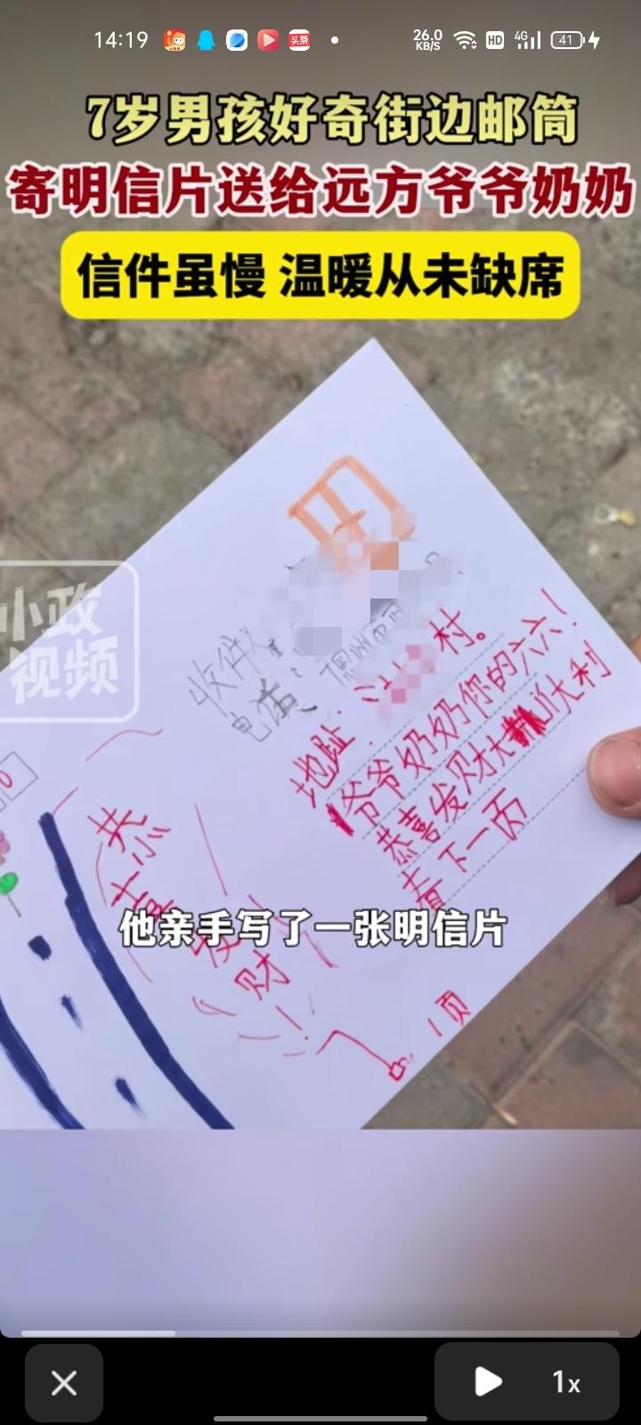 在网络时代,大家用手机发消息,写信寄信的人越来越少,孩子也十分意外,小小明信片真的能跨越距离送到亲人手中。中国邮政也回应称,虽然如今寄信的人越来越少,但服务从未中断