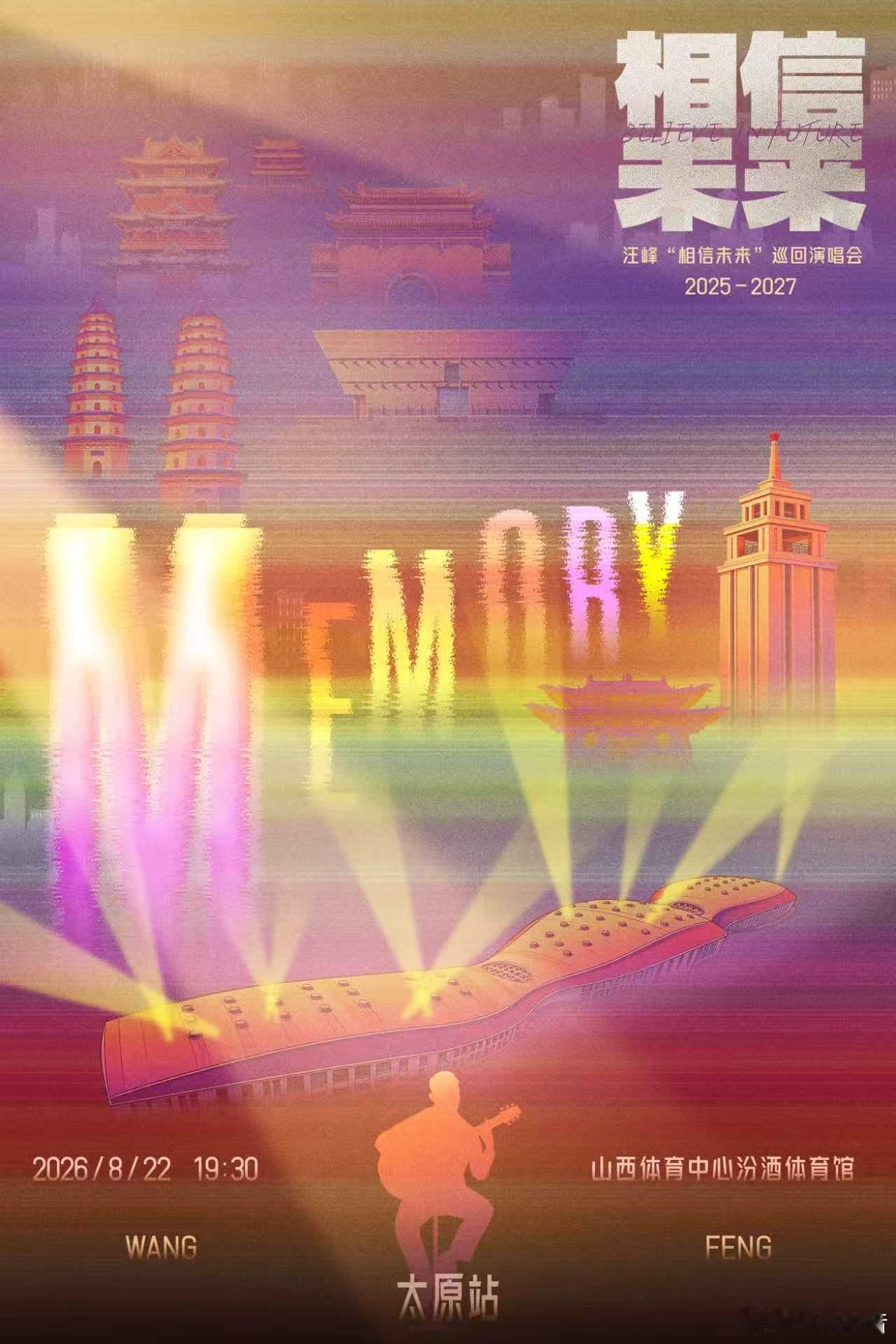 汪峰相信未来巡演 当摇滚的声浪席卷并州大地,当信仰的旋律响彻汾河之畔,汪峰「相信未来」巡回演唱会正式登陆太原!历经时光沉淀,依旧热血滚烫,8 月 22 日,山西体育中心汾酒体育馆,汪峰携经典之作与全新篇章,与三晋歌迷并肩而立,用穿透岁月的歌声,唱响对生活的热爱、对未来的笃定。这个八月,让我们在太原共同相信未来,放声高歌。