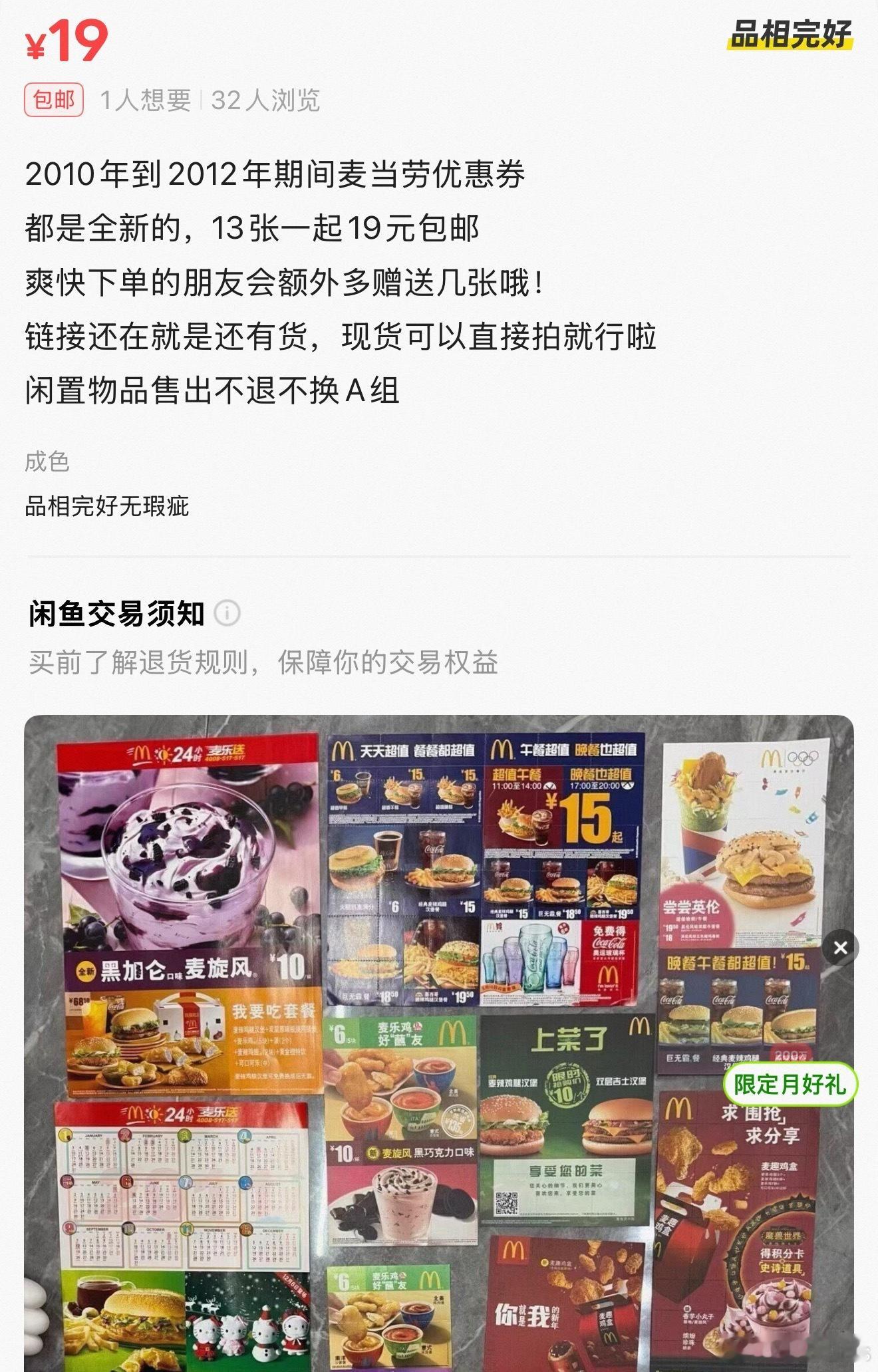 好癫,麦当劳纸质优惠券都可以当情怀野卖!