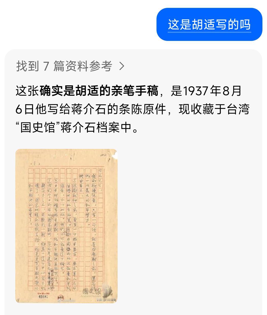 这群人竟能将胡适亲笔写给蒋介石、建议放弃东三省的信说成是假的,简直无耻至极。我并