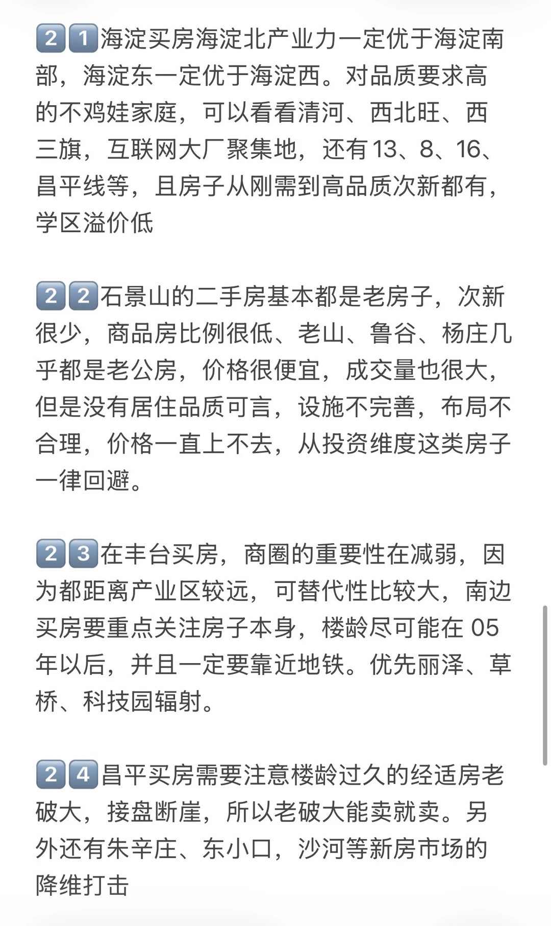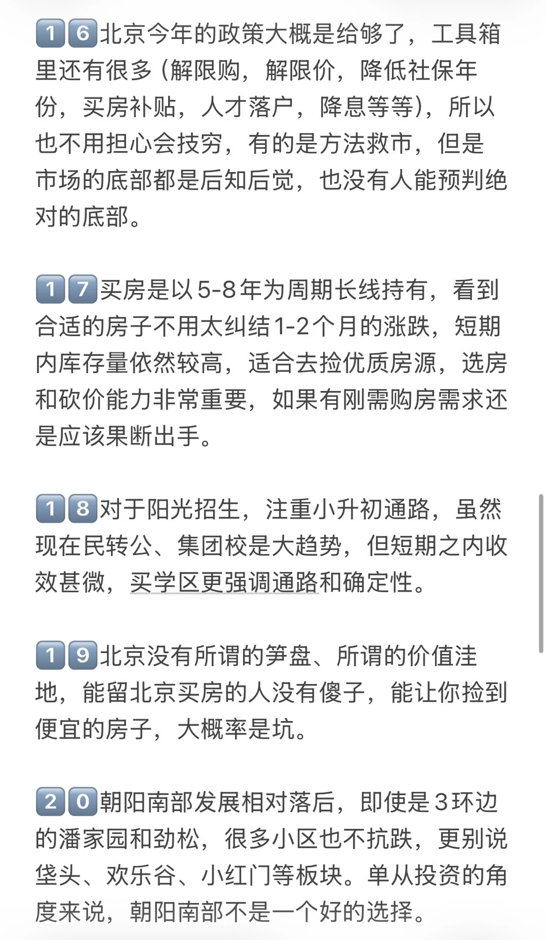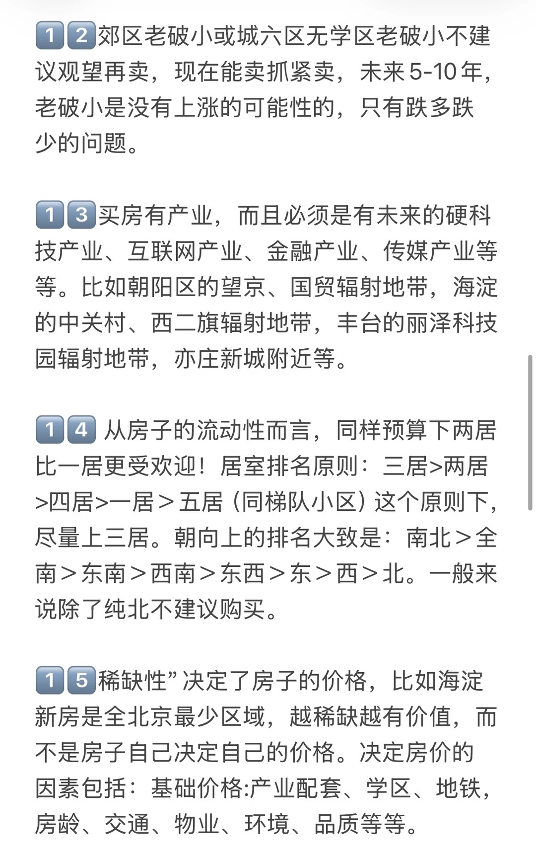 2⃣️ 未来北京不会有大涨跌的时候了,你的房子如果是老破小,现在会跌,未来还会跌,要认清这个现实。只有20%好地段好位置好板块才有空间,要么是带有产业的品质次新商品房,要么是学区价值高品质不错的书包房。