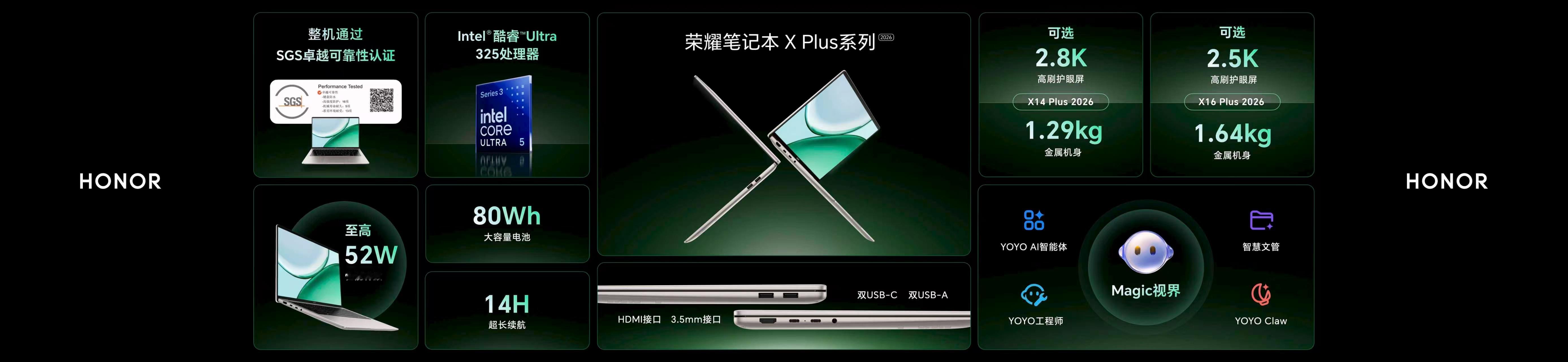 全新荣耀笔记本 X Plus系列2026延续荣耀X系列硬核品质基因,通过了高强