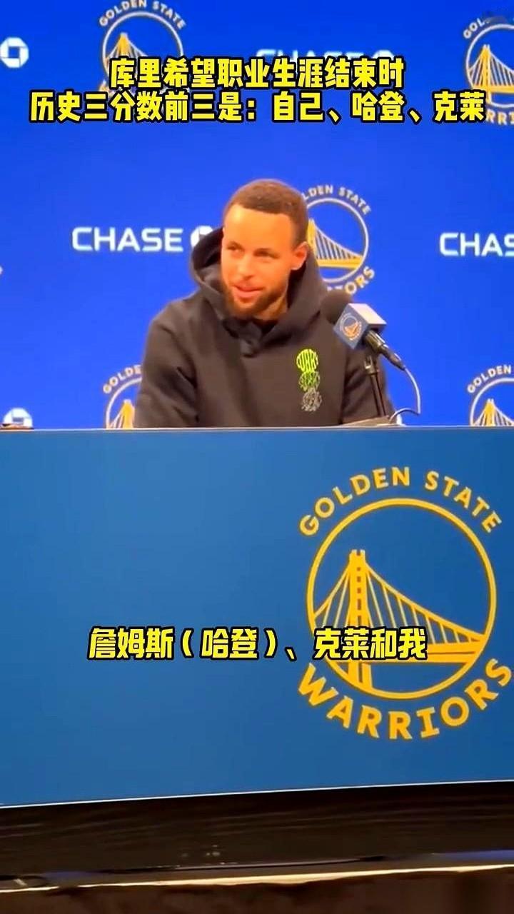 库里对着采访镜头吐露了一个极具统治力的野心:他希望等这一代人全部退役时,历史三分榜的前三名,名字必须依次是库里、哈登和克莱。