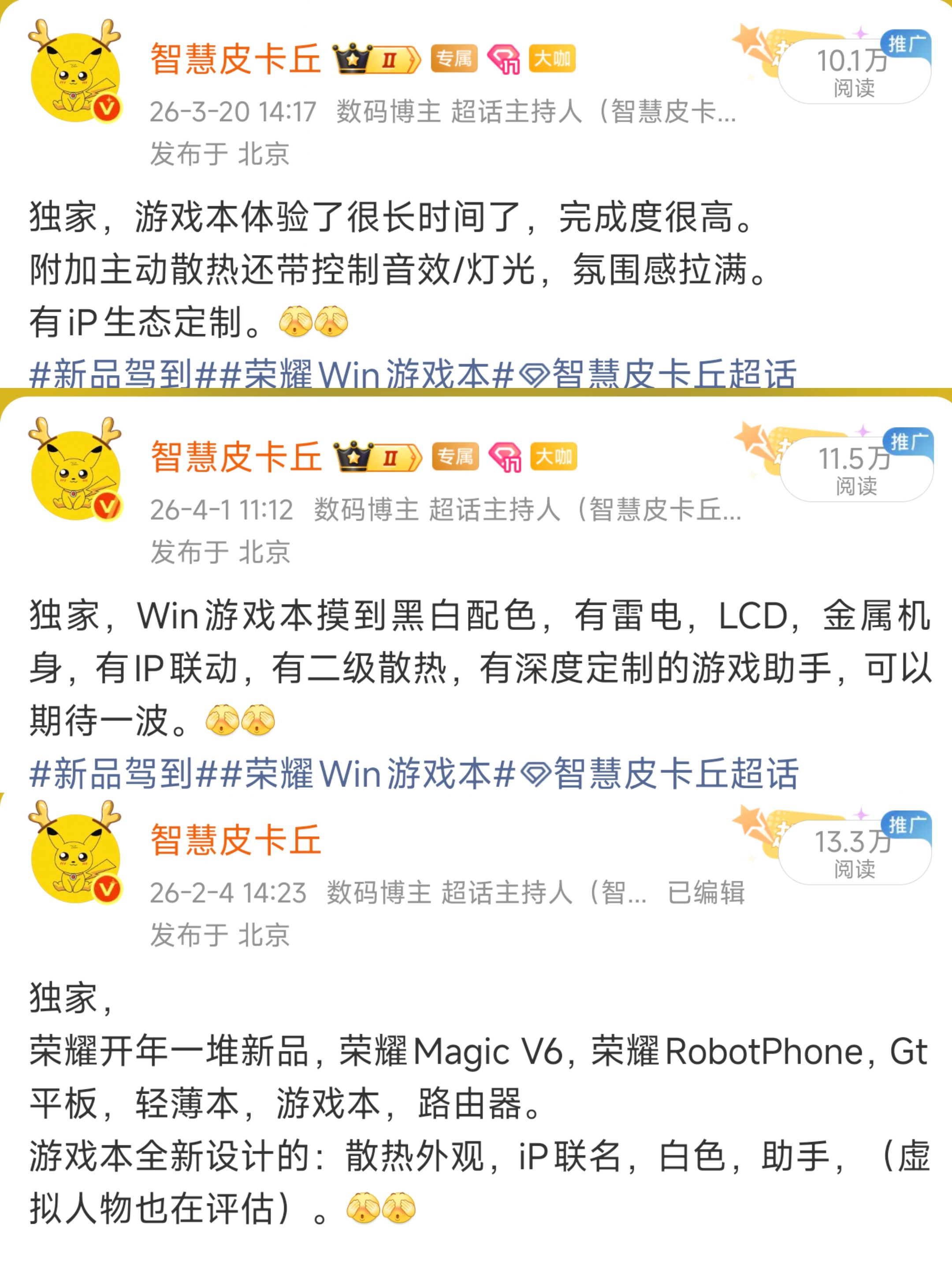 新品汇总:WIN H9电竞游戏本WIN H7游戏本WIN 360W 氮化镓+碳化硅充电器WIN三模游戏鼠标WIN四模空间音频游戏耳机WIN双肩背包WIN笔记本支架MagicBook Pro16MagicBook Pro14荣耀笔记本X16 Plus荣耀笔记本X14 PlusMagicPad 3 Pro 12.3 OLED荣耀亲选头戴式HiFi耳机新品驾到荣耀Win游戏本智慧皮卡丘