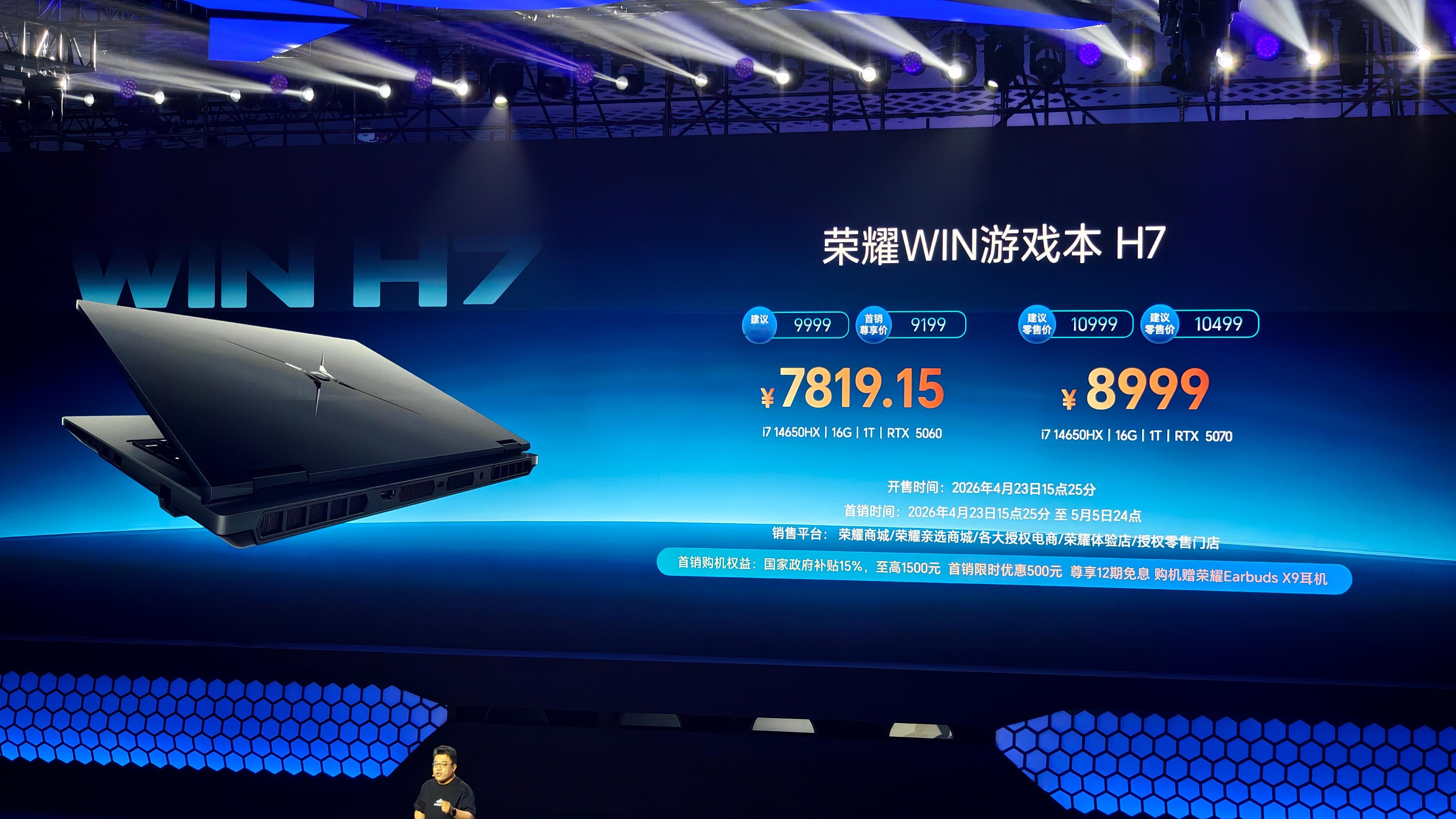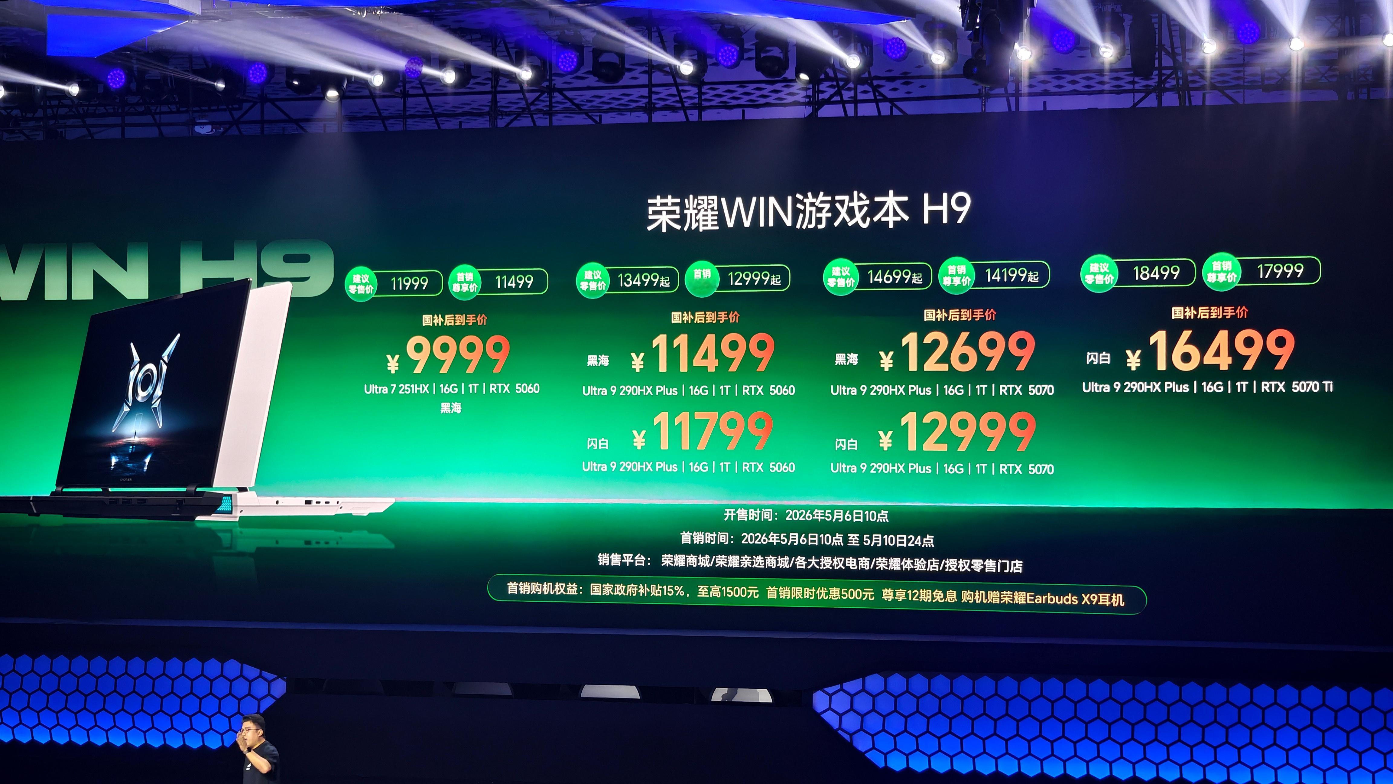 荣耀游戏本家族两大成员价格揭晓:H9版5月6日首销,国补后9999元起步;H7版