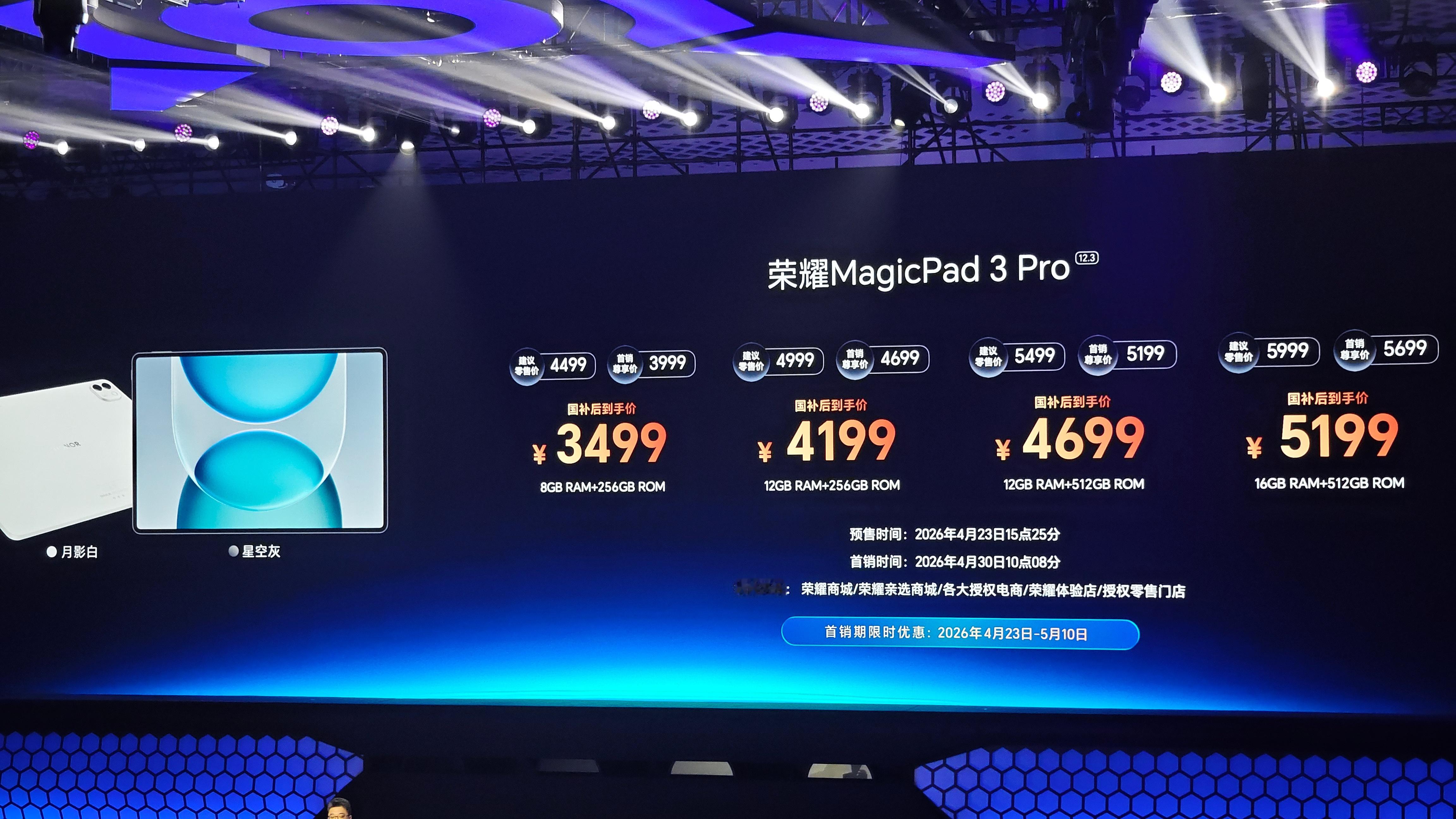 荣耀MagicPad3Pro12.3平板售价公布(国补后)荣耀发布会8+