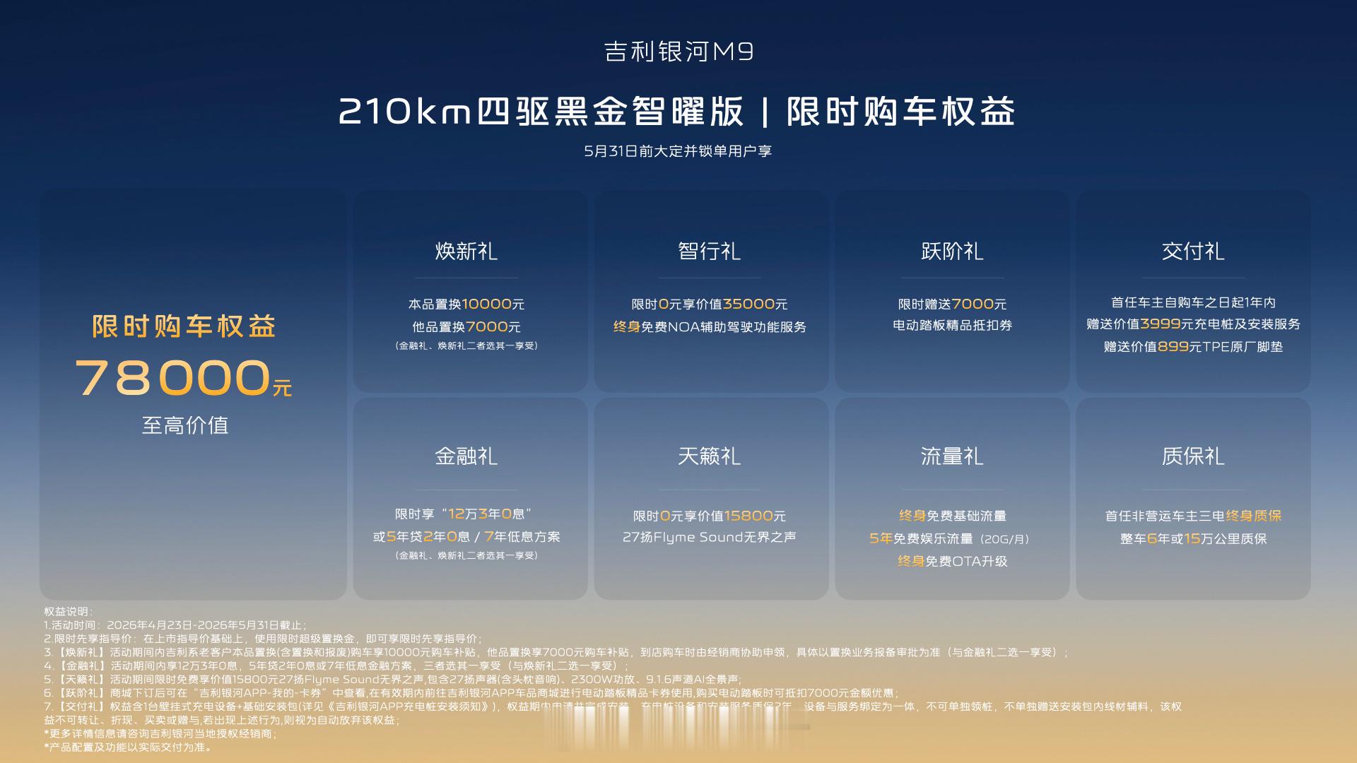 吉利银河M9黑金智曜版上市限时25.98万,5月31日前购车可享至高7.8万权益。