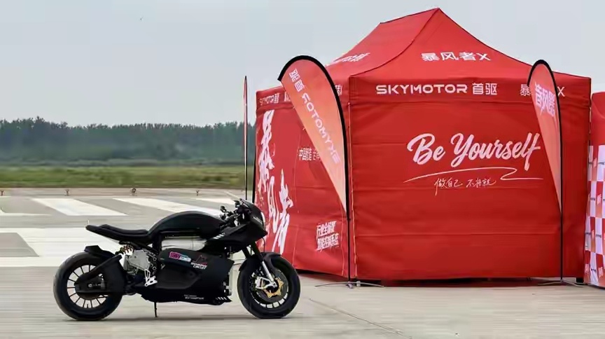 国产电摩迎来历史性时刻,4月23日武汉机场封闭跑道,首驱科技暴风者 X 二代实测最高时速突破369公里,直接刷新国产电摩极速纪录。