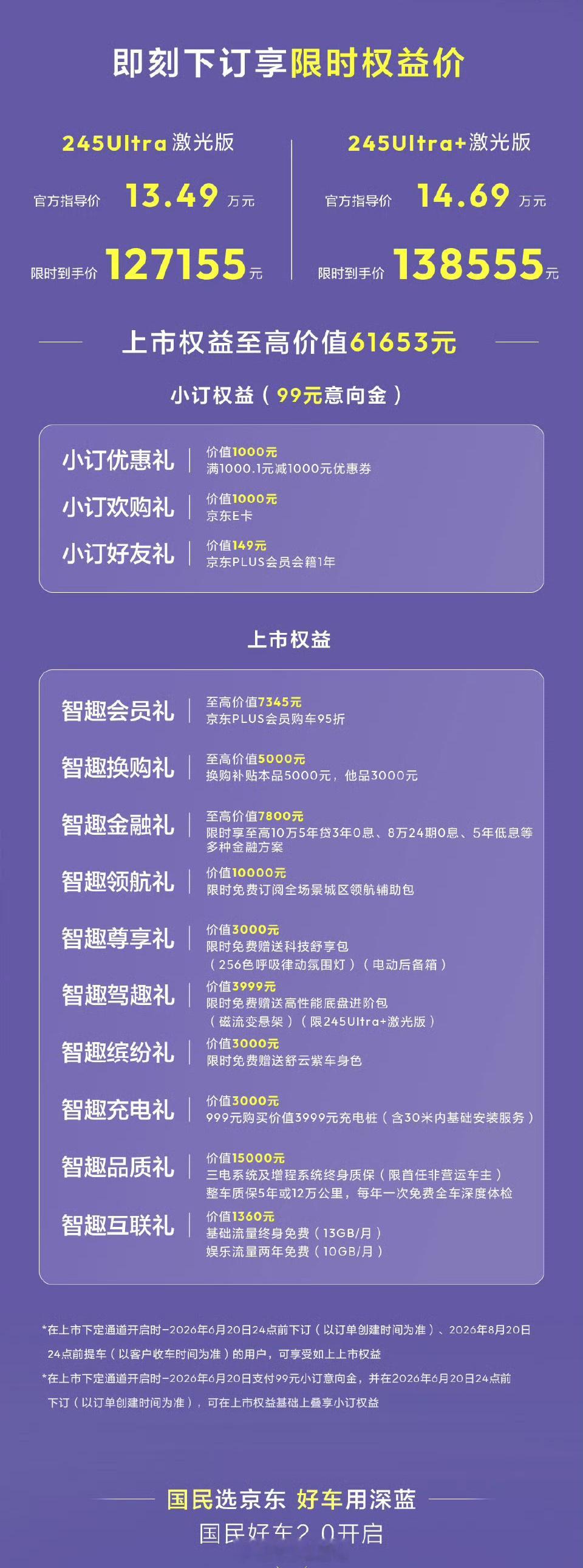 深蓝L06增程版上市限时12.7万起,再送1000京东卡,可享限时6万+权益。本次新推出的两款车型,在京东汽车与深蓝汽车正式签署战略合作协议后,在京东独家销售。