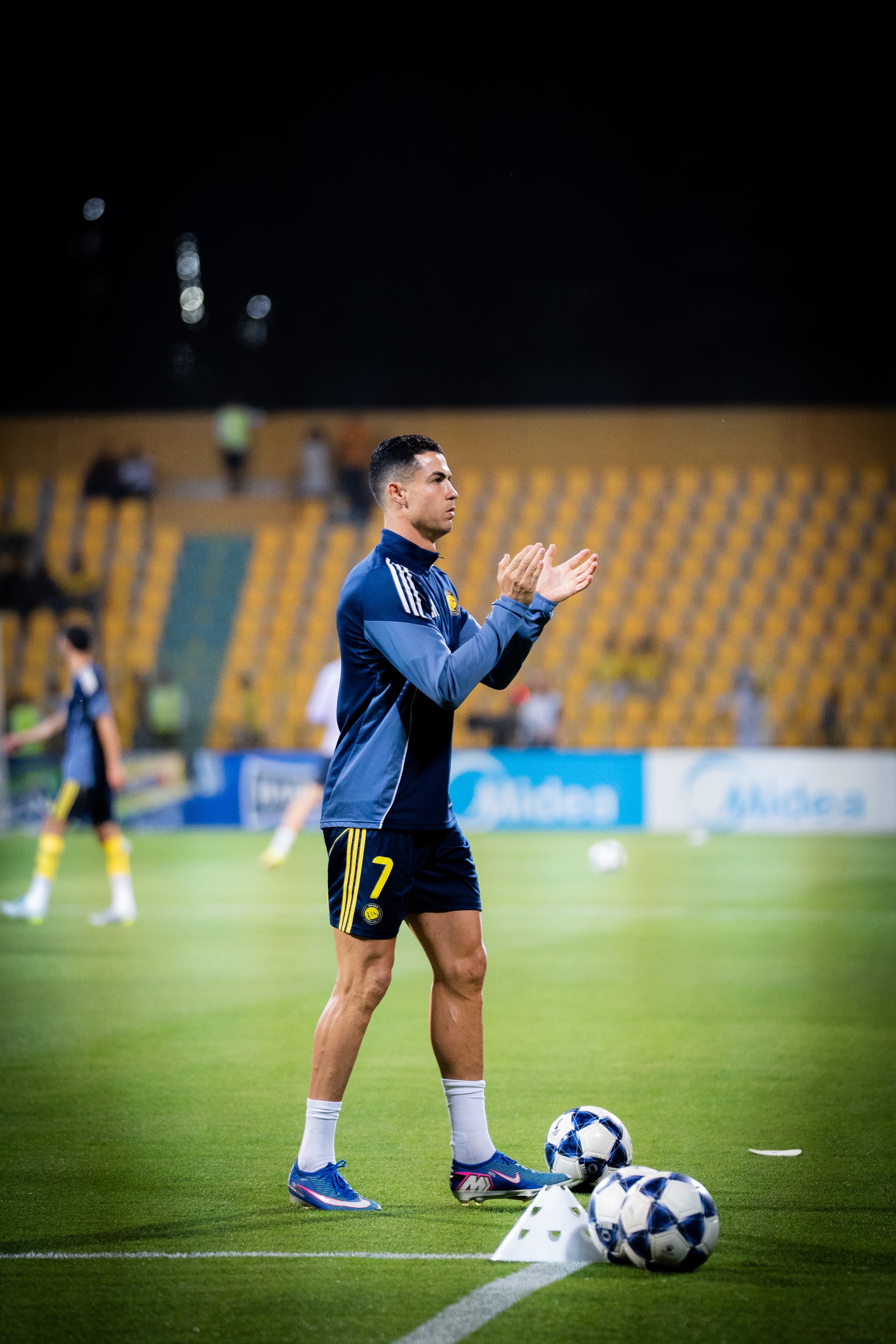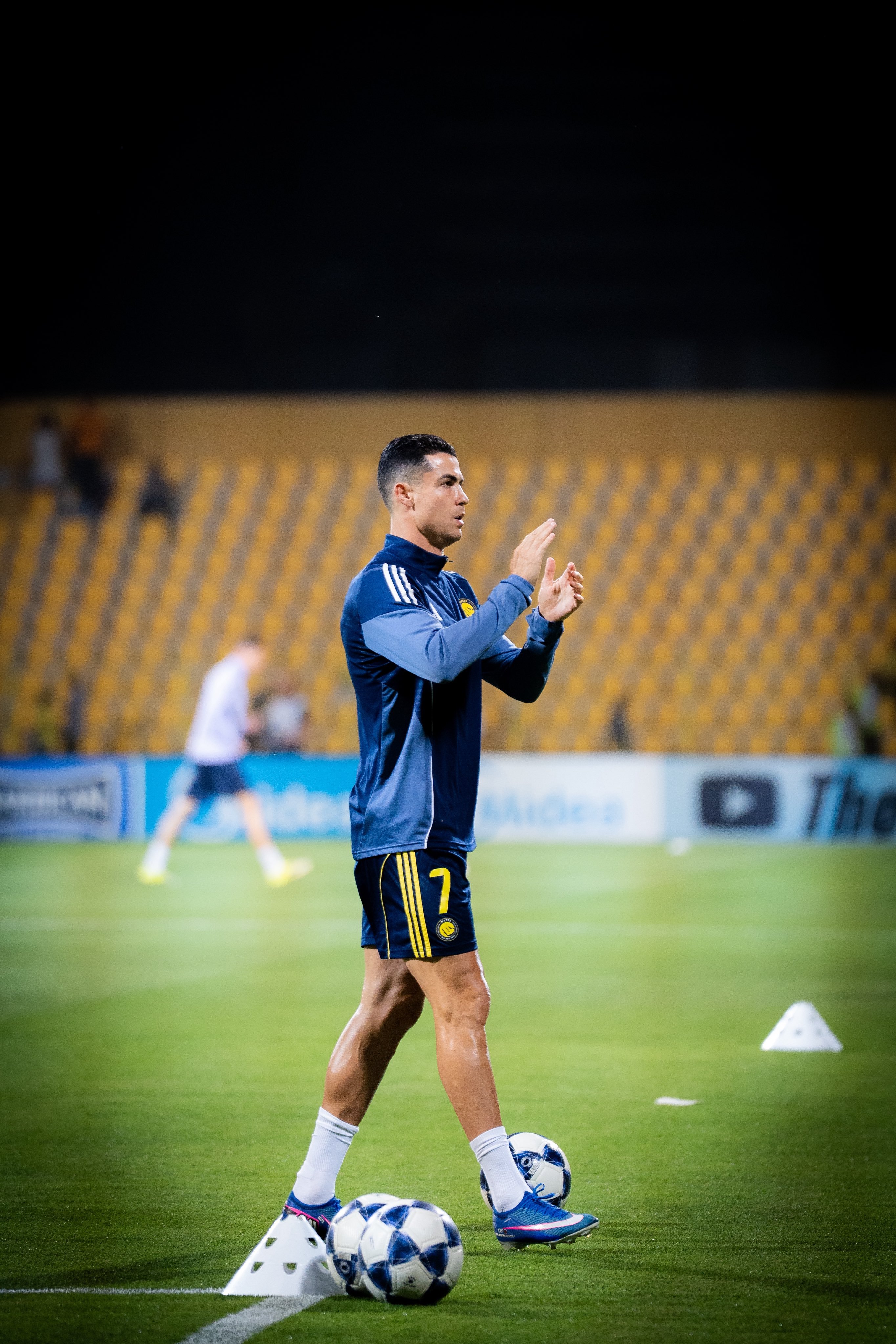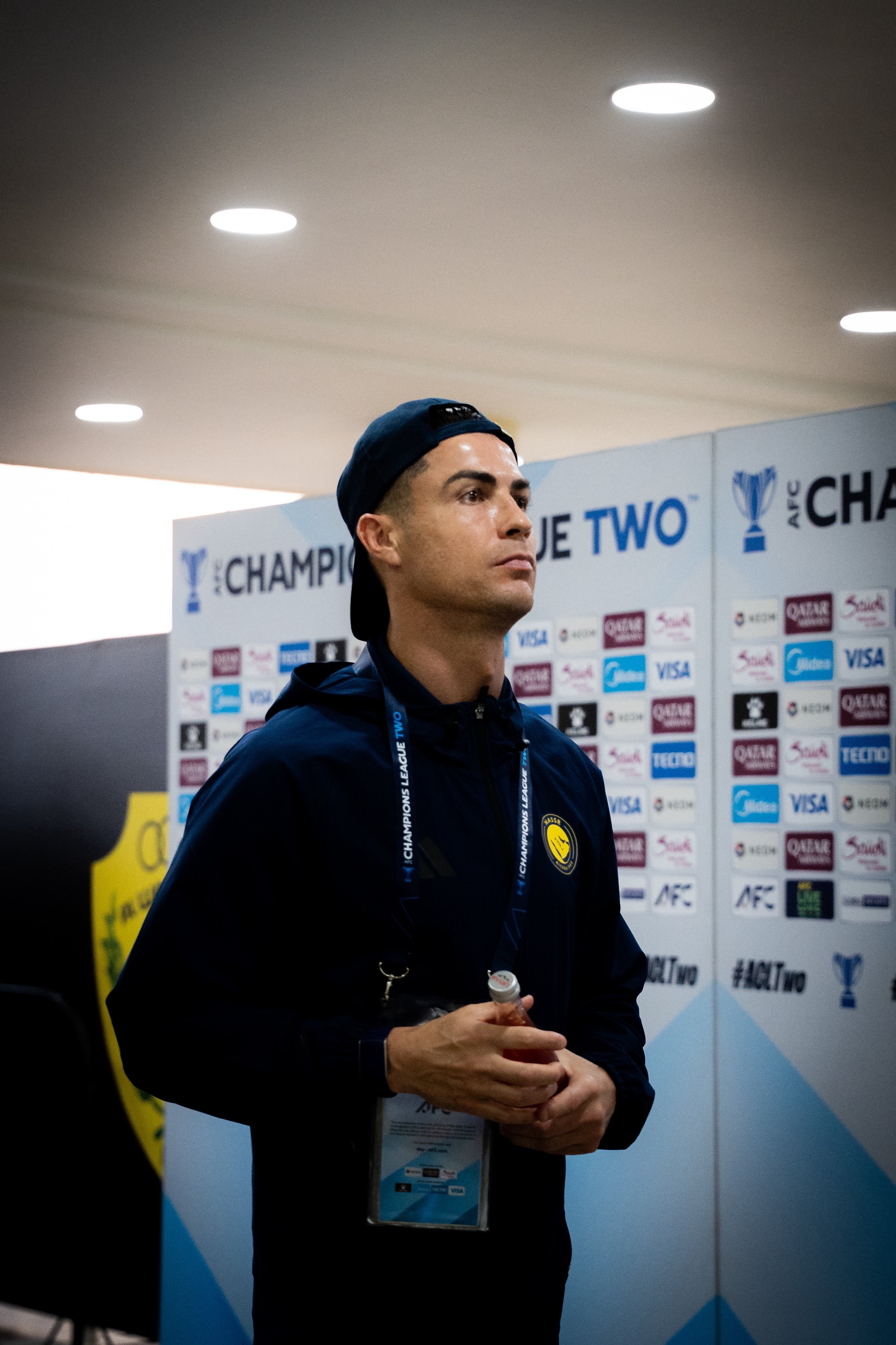 C罗利雅得胜利vs多哈国民单戴耳坠+反戴棒球帽